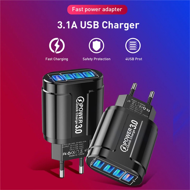 【Fast Power Adapter 4 Port USB Snel Opladen 】