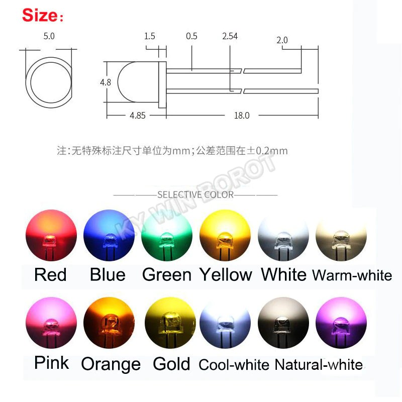 50Pcs 5Mm Strohoed Led Diode Super Heldere Witte 0.3W 0.5W 0.75W F5 Power 0.5W Light Emitting Diode Rood Geel Groen Blauw Warm