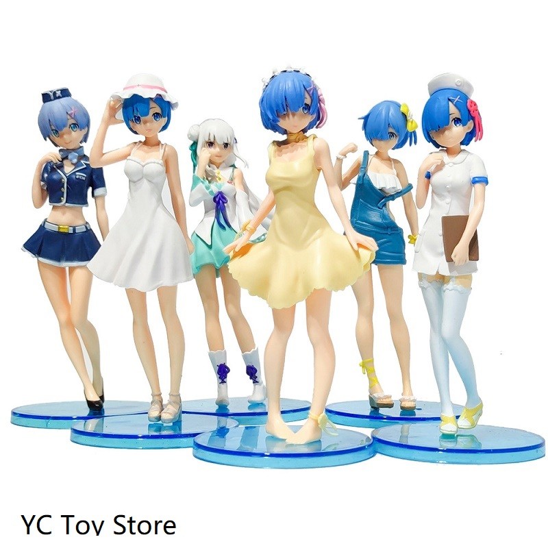 6 Stks/Set Anime Re: Leven In Een Andere Wereld Van Nul Rem Ram Badpak Strap Denim Action Figure Collection Model Beeldje Speelgoed