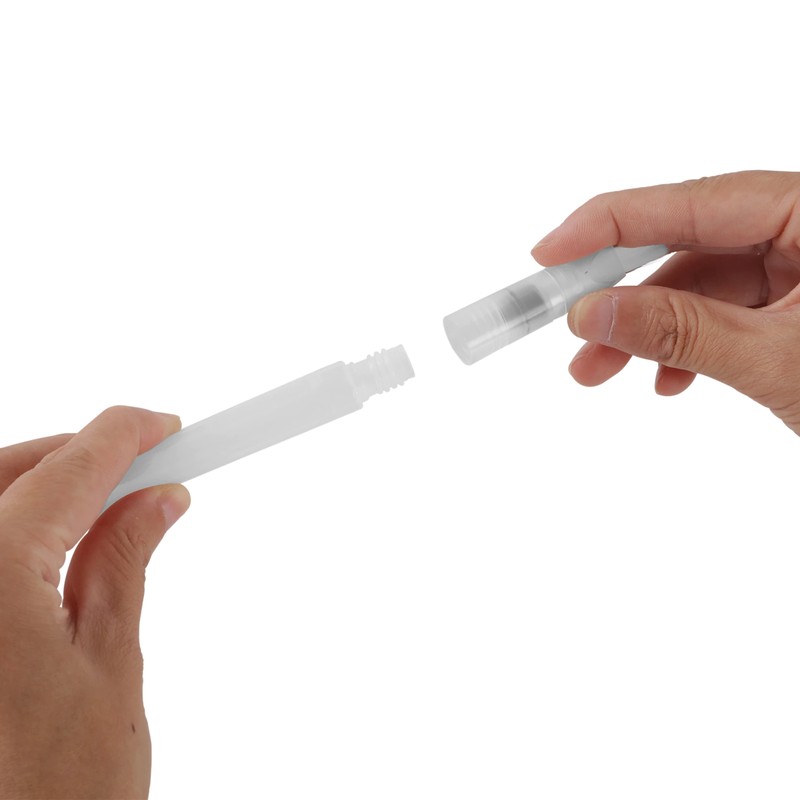 * Knijp of vul het water reservoir, schroef op de borstel tip.