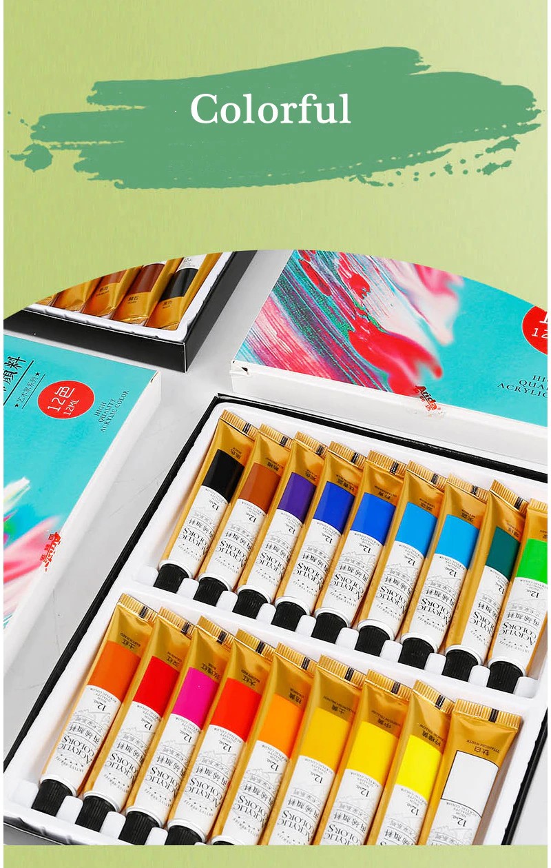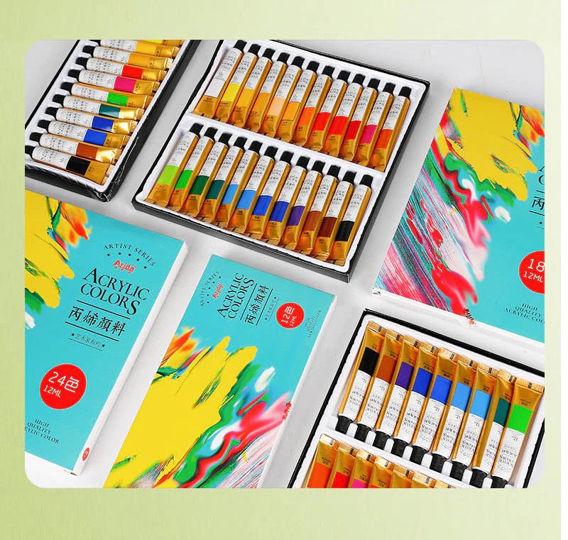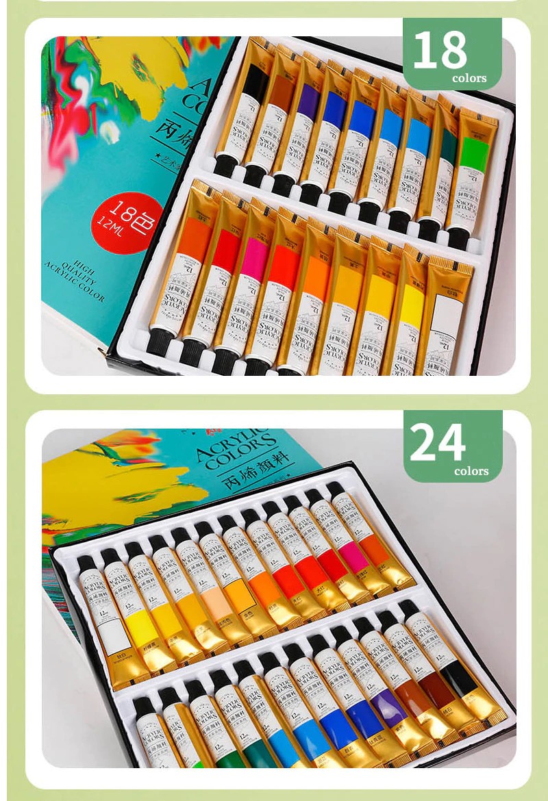 Acryl Verf 12/18/24 Kleuren Professionele Borstel Set 12Ml Buizen Kunstenaar Tekening Pigment Hand Geschilderde Muur Verf Diy
