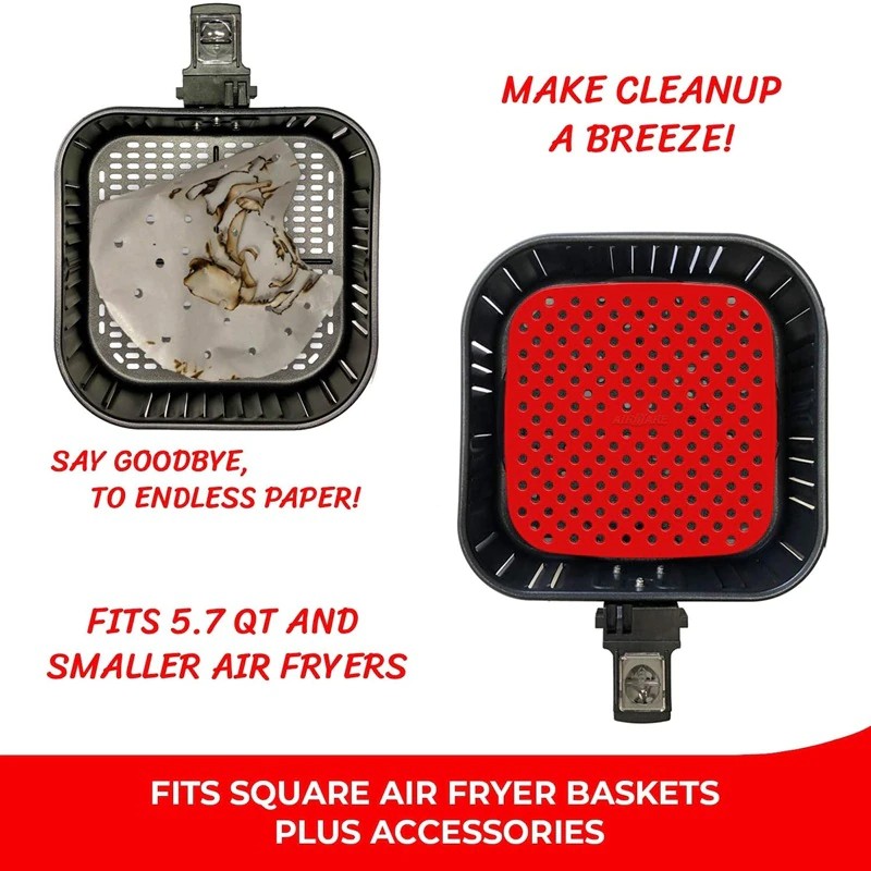 2. Universal fit voor kleine en medium air friteuses: onze 7.5-Inch of 8.5-Inch vierkante lucht friteuse liners passen in meest 5.7 QT en kleinere vierkante manden evenals lucht friteuse accessoires zoals een lucht friteuse pot, air friteuse pan, of een lucht friteuse lade. Ze kunnen ook worden gebruikt als voedsel stoomboot liner, siliconen onderzetter, of siliconen mat in een crock pot of snelkookpan