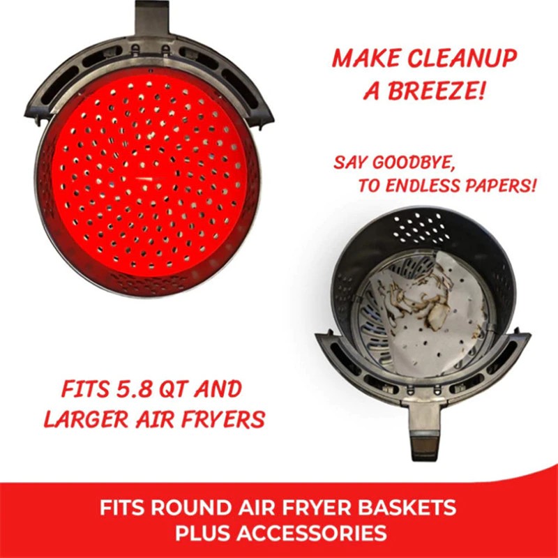 5. Hittebestendige En Voedsel-Veilig: gebruikt BPA gratis, food-grade siliconen die kan tot 430F voor air frituren, stomen, en oven bakken. Voorkomen bleekmiddel perkamentpapier rondes of potentieel giftige materialen zoals PFOA, PFAS, of zware metalen uit een vernederende non-stick mand coating en proberen onze Herbruikbare Lucht Friteuse Liners
