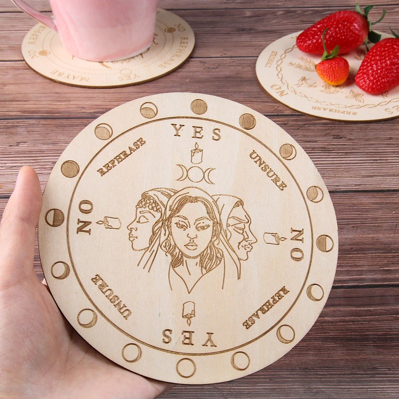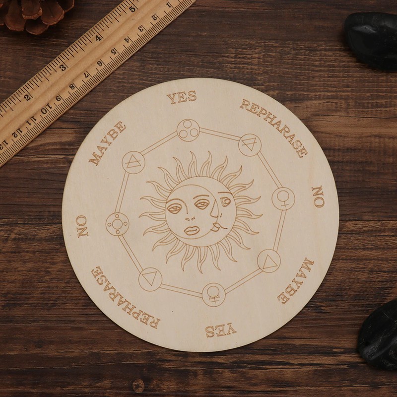 Carven Altaar Houten Waarzeggerij Slinger Boord Star Zon Maan Laser Cut Slice Houten Basis Onderzetters Muur Teken Decor Zeshoekige Wees