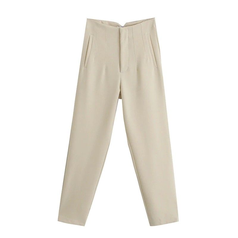 Aoni bier Za Nieuwste Vrouwen Lente Broek Verleden Hoge Waisted Broek Fashion Kantoor Lady beige Elegante Casual Famale Stright Broek