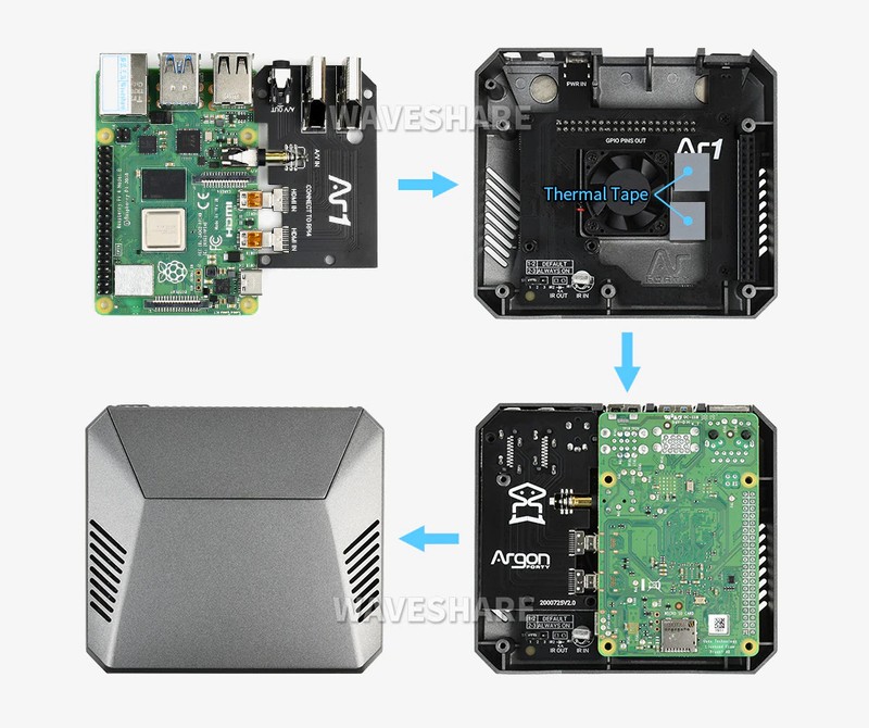 De Argon EEN M.2 Case ups de ante door (1) twee full-sized HDMI poorten, (2) Power Management Modi die zorgt voor automatische opstarten, (3) ingebouwde IR ondersteuning met gestroomlijnde opties voor configuratie en (4) geïntegreerde M.2 SATA SSD ondersteuning via de USB 3 Poorten van de Raspberry Pi 4.