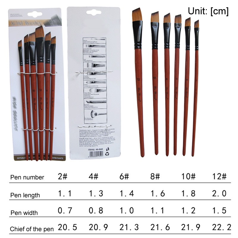 Art Model Verf Nylon Haar Acryl Olie Aquarel Tekening Art Supplies Bruin 6 Pcs Schilderen Craft Kunstenaar Penselen Set