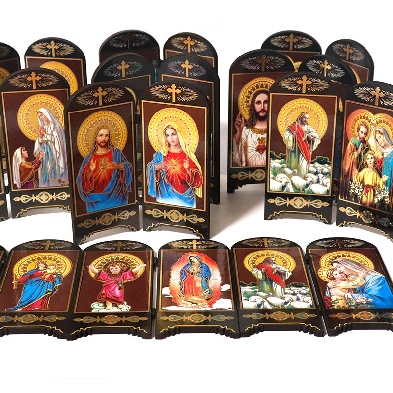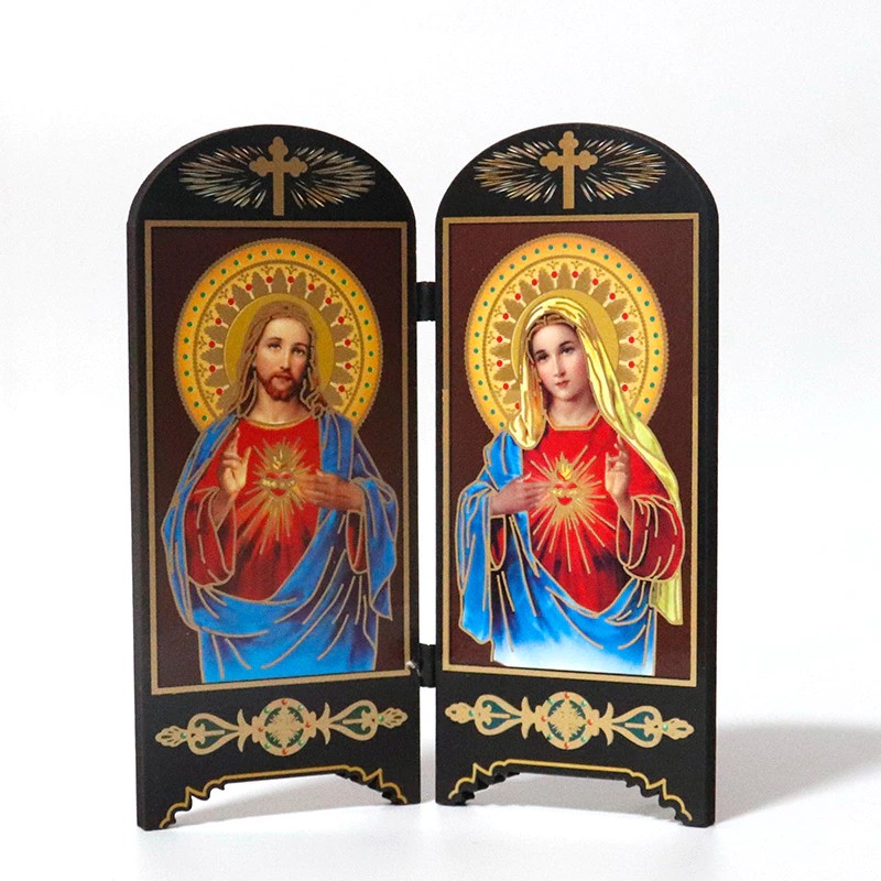 Articulos Religiosos Catolico Religieuze Figuur Icoon Dubbele Scherm Bureau Decoratie Jezus Christus Heilig Hart Virgen Maria Cijfers