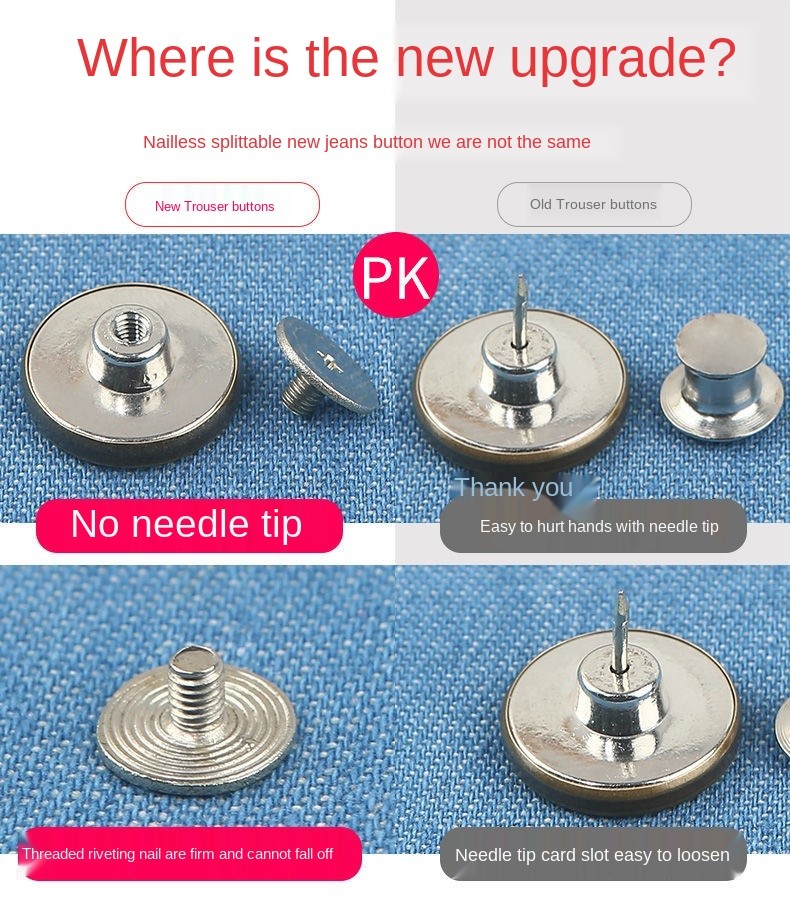 Deze knoppen met Unieke kaartslot ontwerp, kan niet vallen wanneer vast, en ze zullen krijgen geplakt voor een lange tijd. Verwijderbare en herbruikbare, waardoor herbruikbare gebruik. Deze jean knoppen zijn ook een uitstekende vervanging voor ontbrekende knoppen.