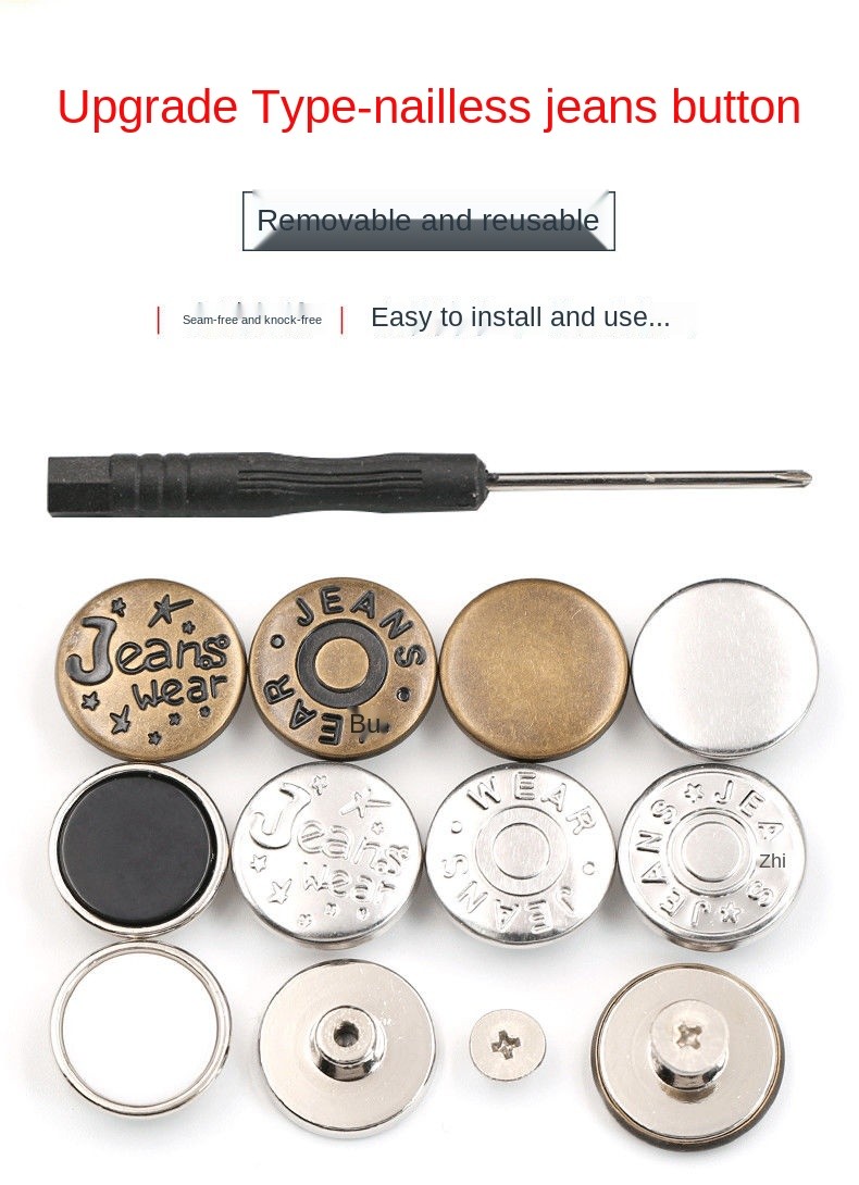 Artracyse 1/2/5/10 Stuks Van Naad-Gratis Jeans Legering Schroef Type Knoppen Nagel Gratis Taille Afneembare Verstelbare Taille Knoppen Sturen Gereedschap