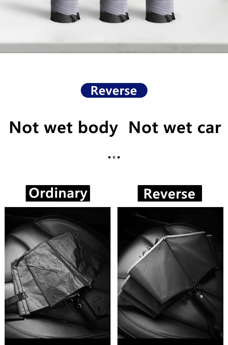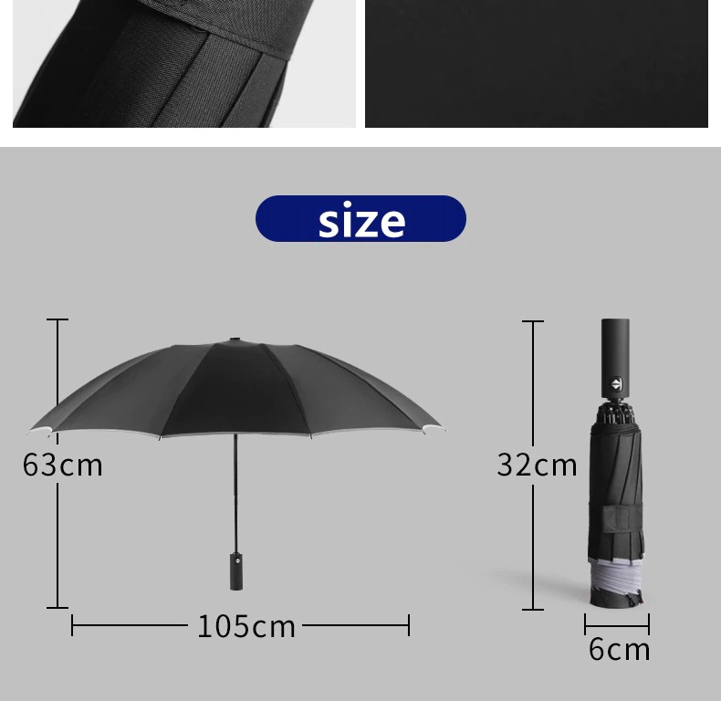 Automatische Paraplu Met Reflecterende Streep Reverse Led Licht Paraplu Drie Vouwen Omgekeerde 10 Ribben Winddicht Paraplu Reizen