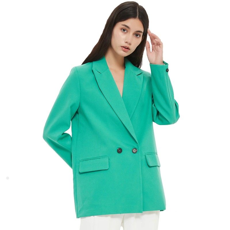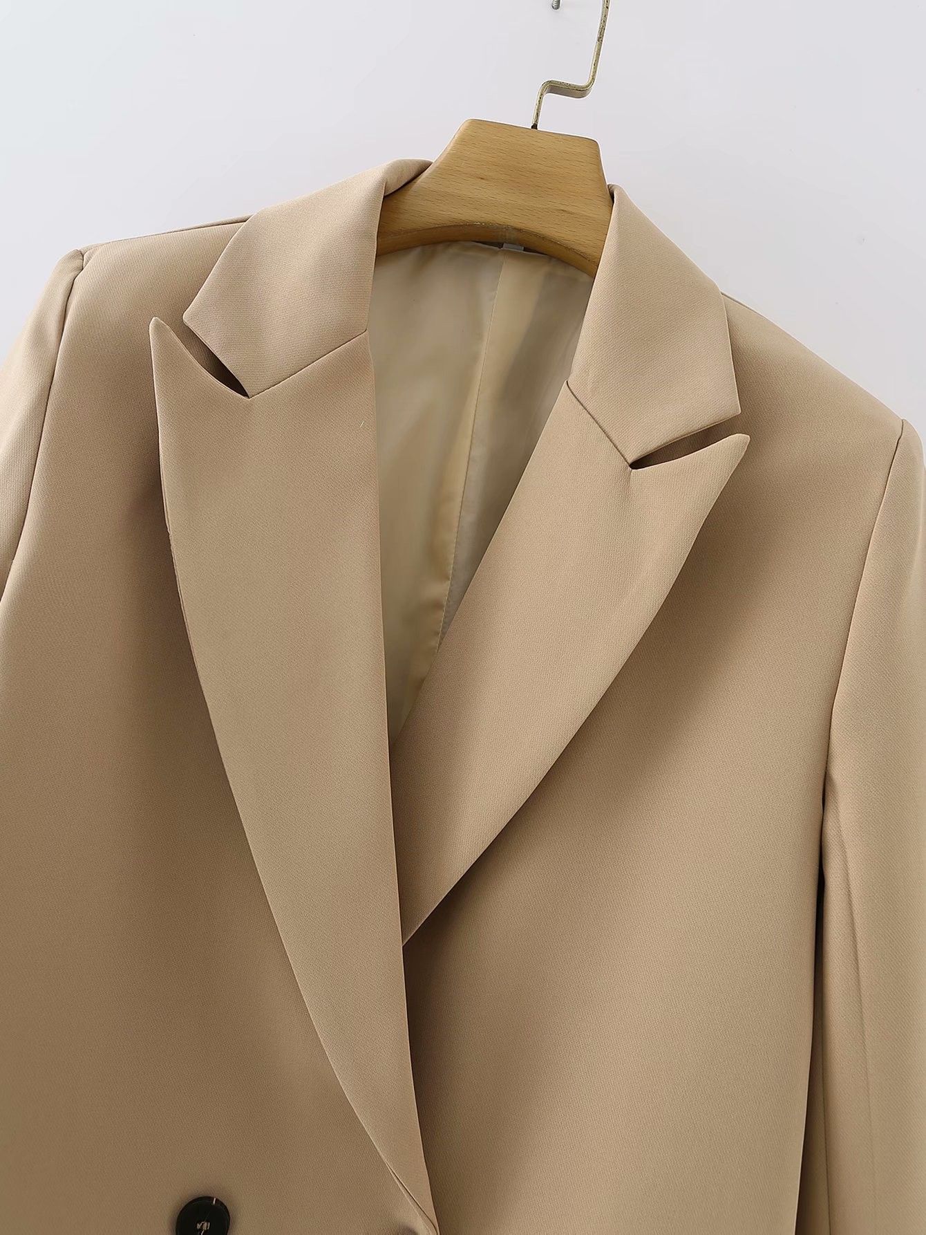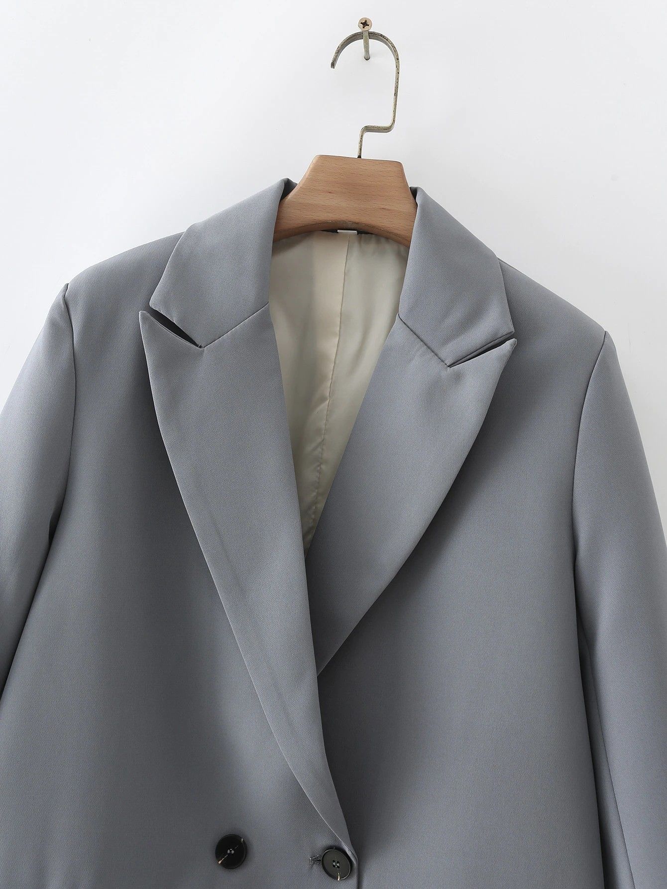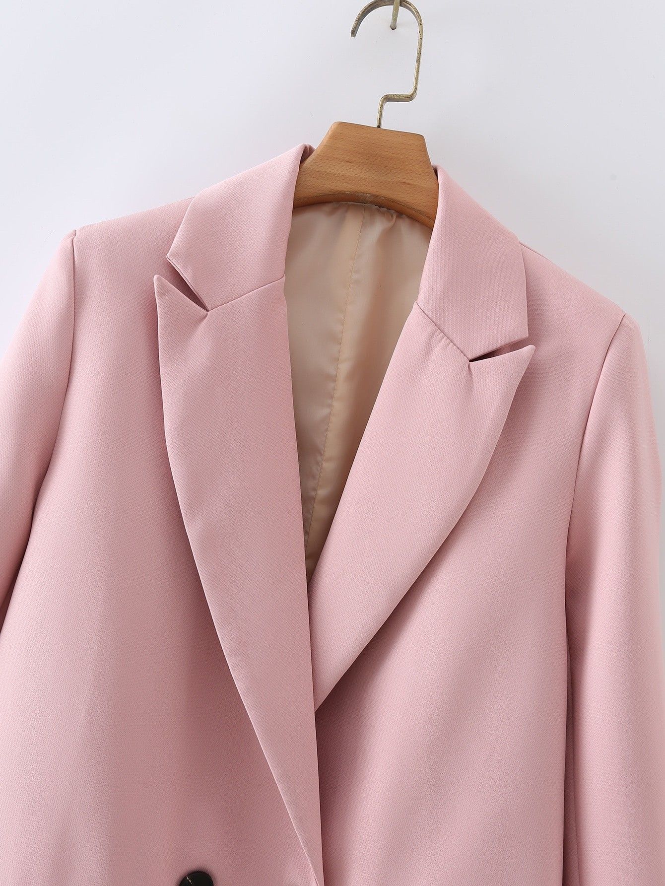 Herfst En Winter Vrouwen Blazer Jacket Casual Effen Kleur Double-Breasted Pocket Decoratieve Jas