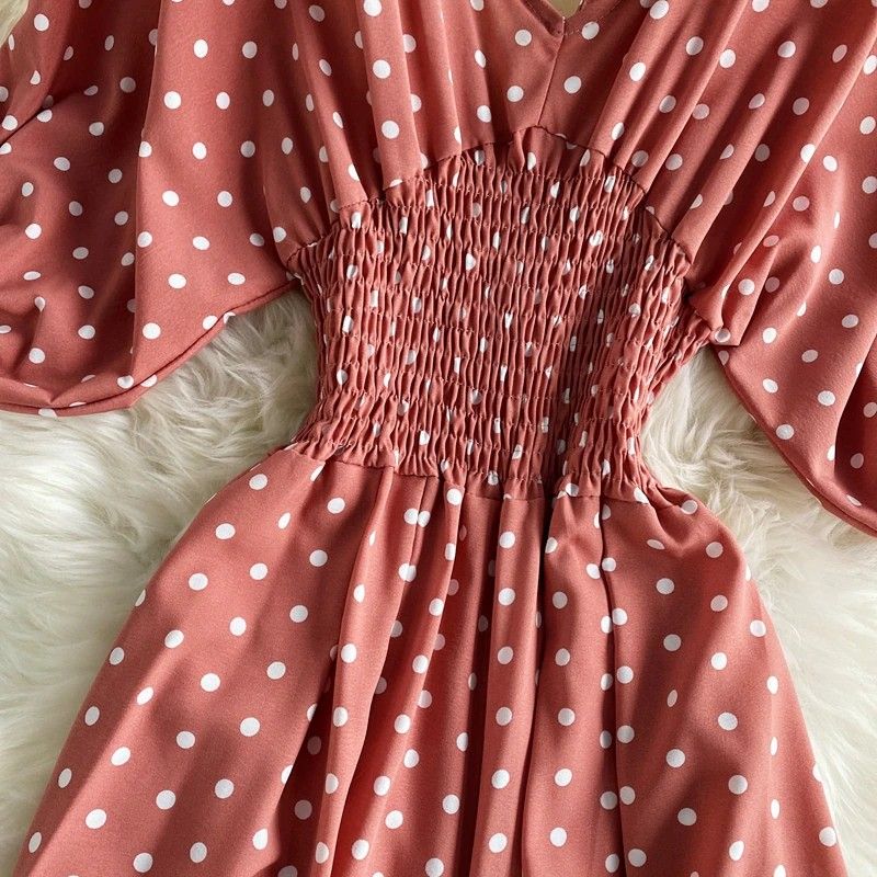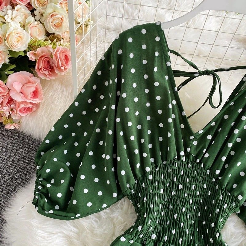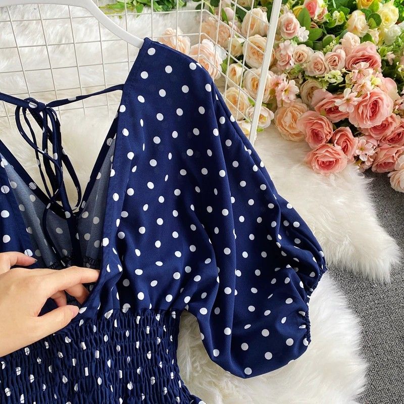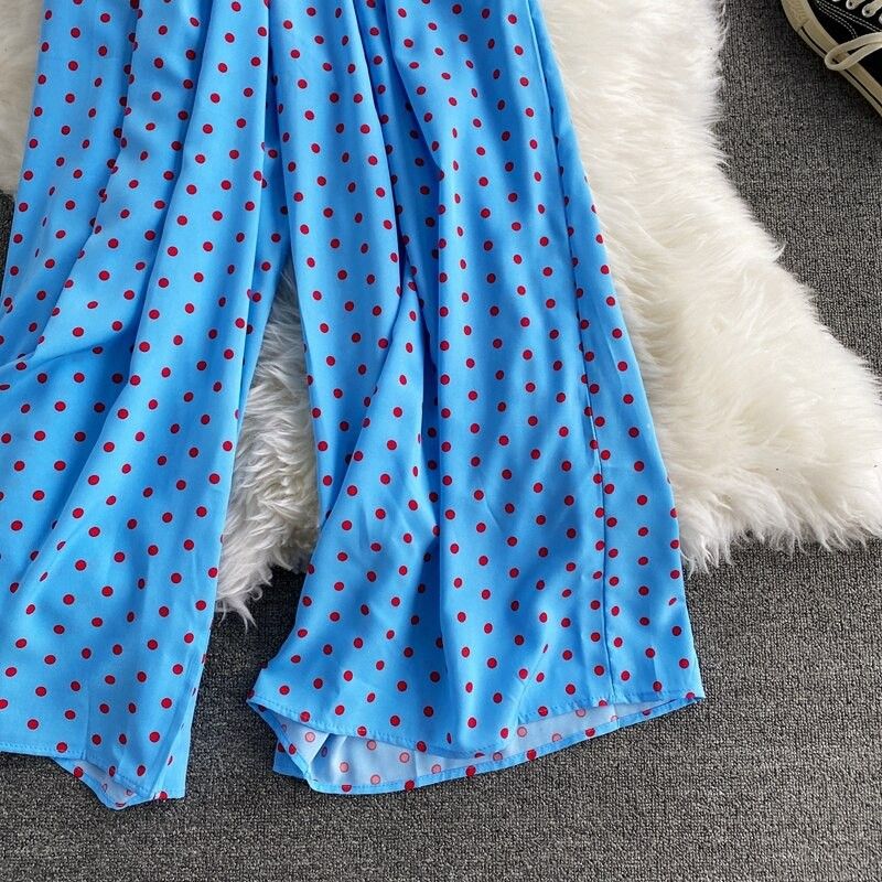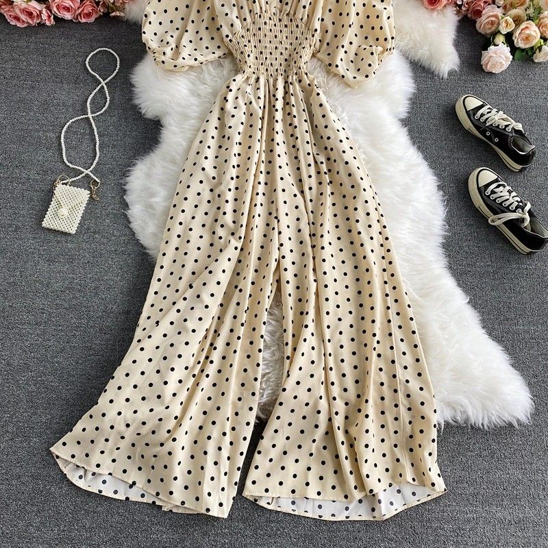 Herfst Sexy Polka Dot Breken Vrouwen Elegante V-Hals Puff Korte Mouw Hoge Taille Jumpsuit Vrouwelijke Losse Wijde Pijpen Speelpakjes Mode