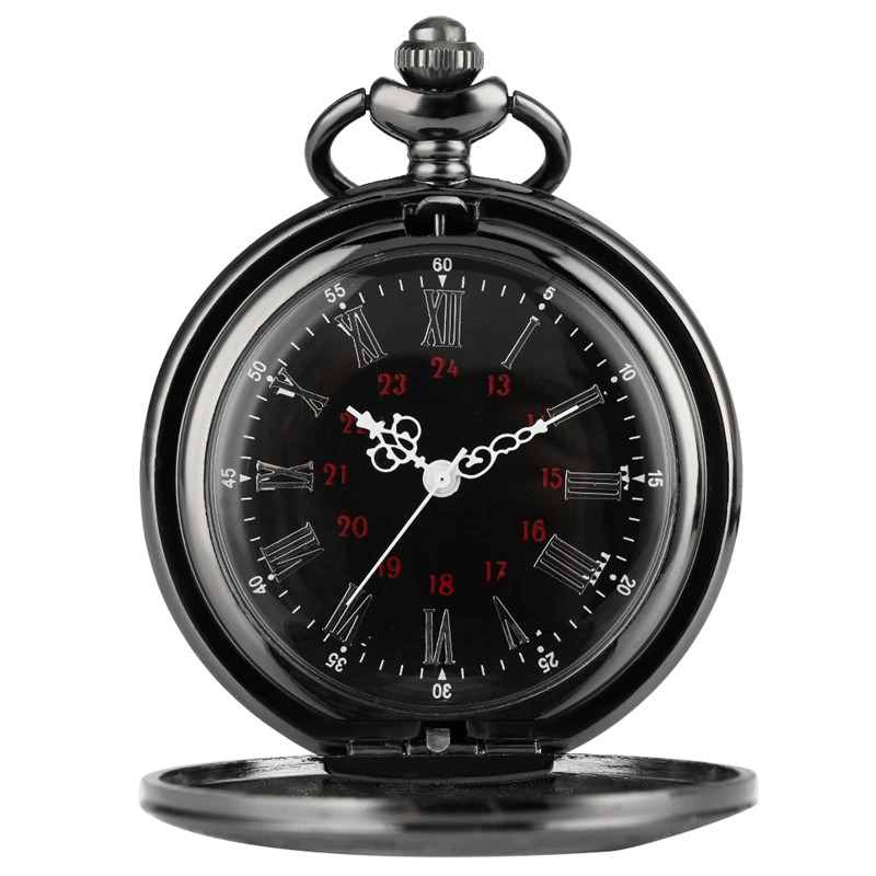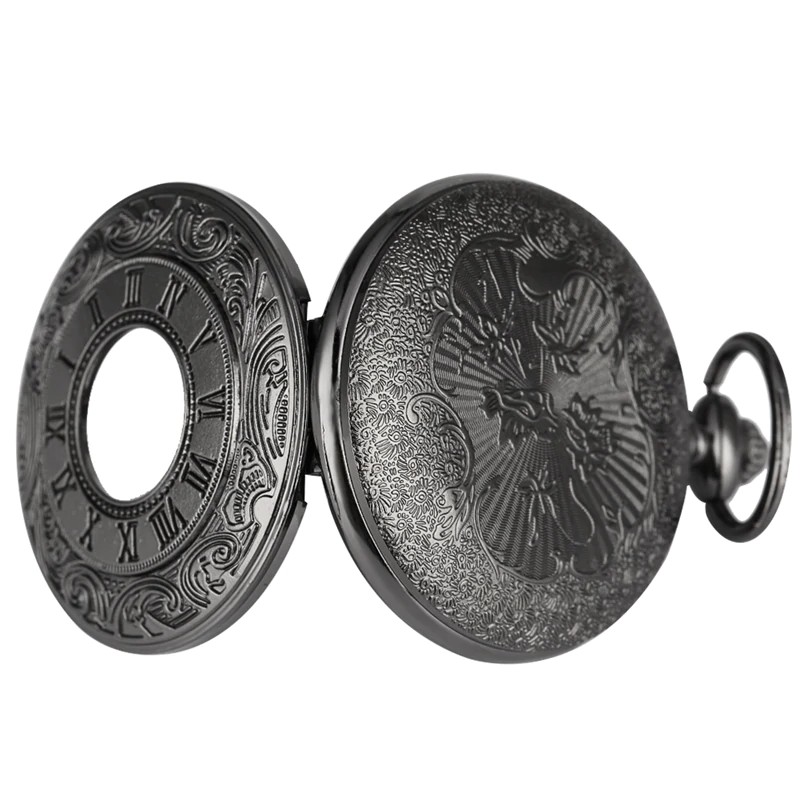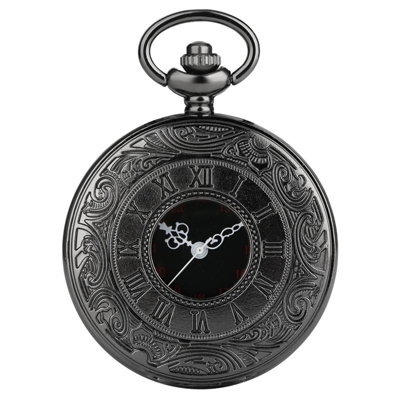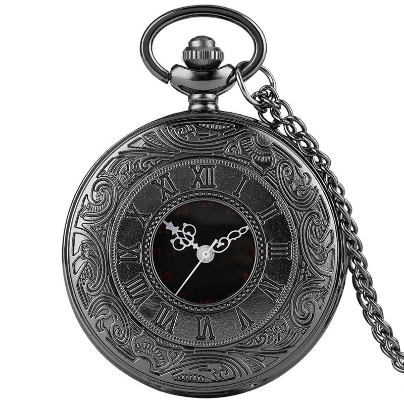 Zwarte Romeinse Cijfers Quartz Zakhorloge Mannen Vrouwen Black Hollow Case Steampunk Vintage Hanger Ketting Beste Cadeaus Voor Mannen Vrouwen