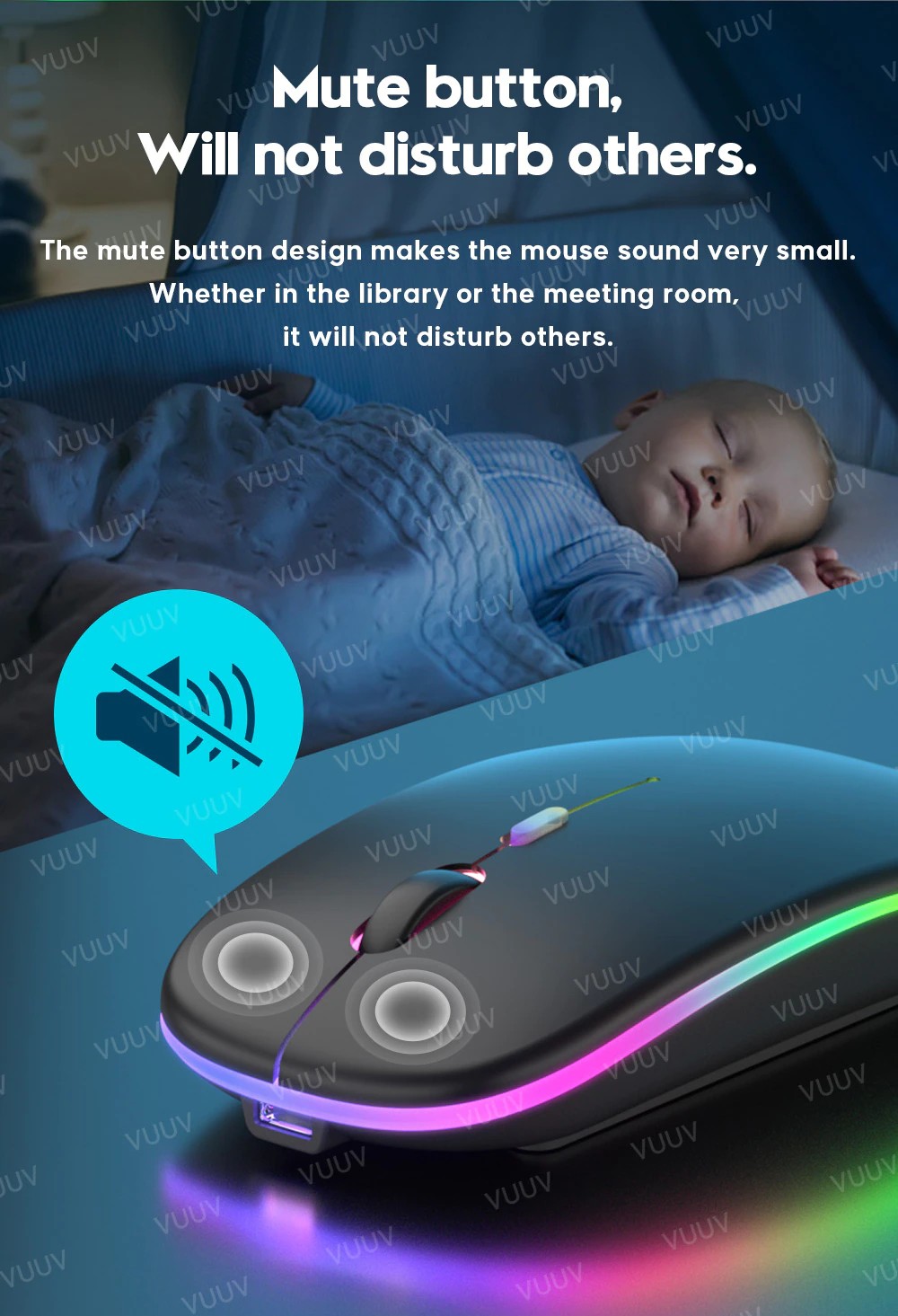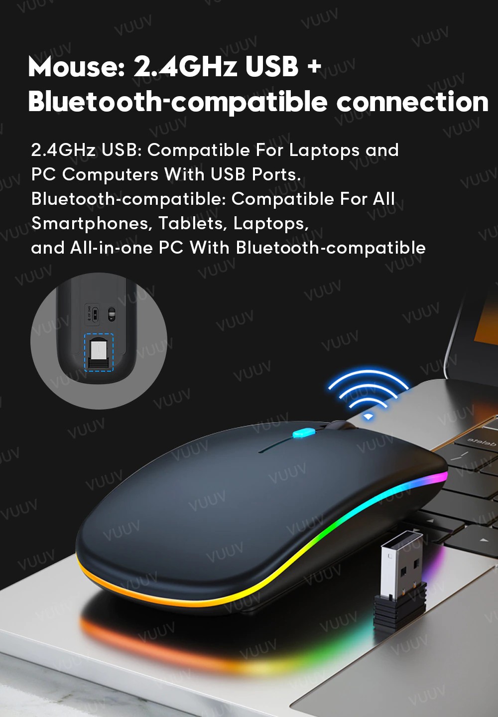 Bluetooth Draadloze Muis Voor Computer Pc Laptop Ipad Tablet Macbook Met Rgb Backlight Ergonomische Stille Oplaadbare Usb Muis