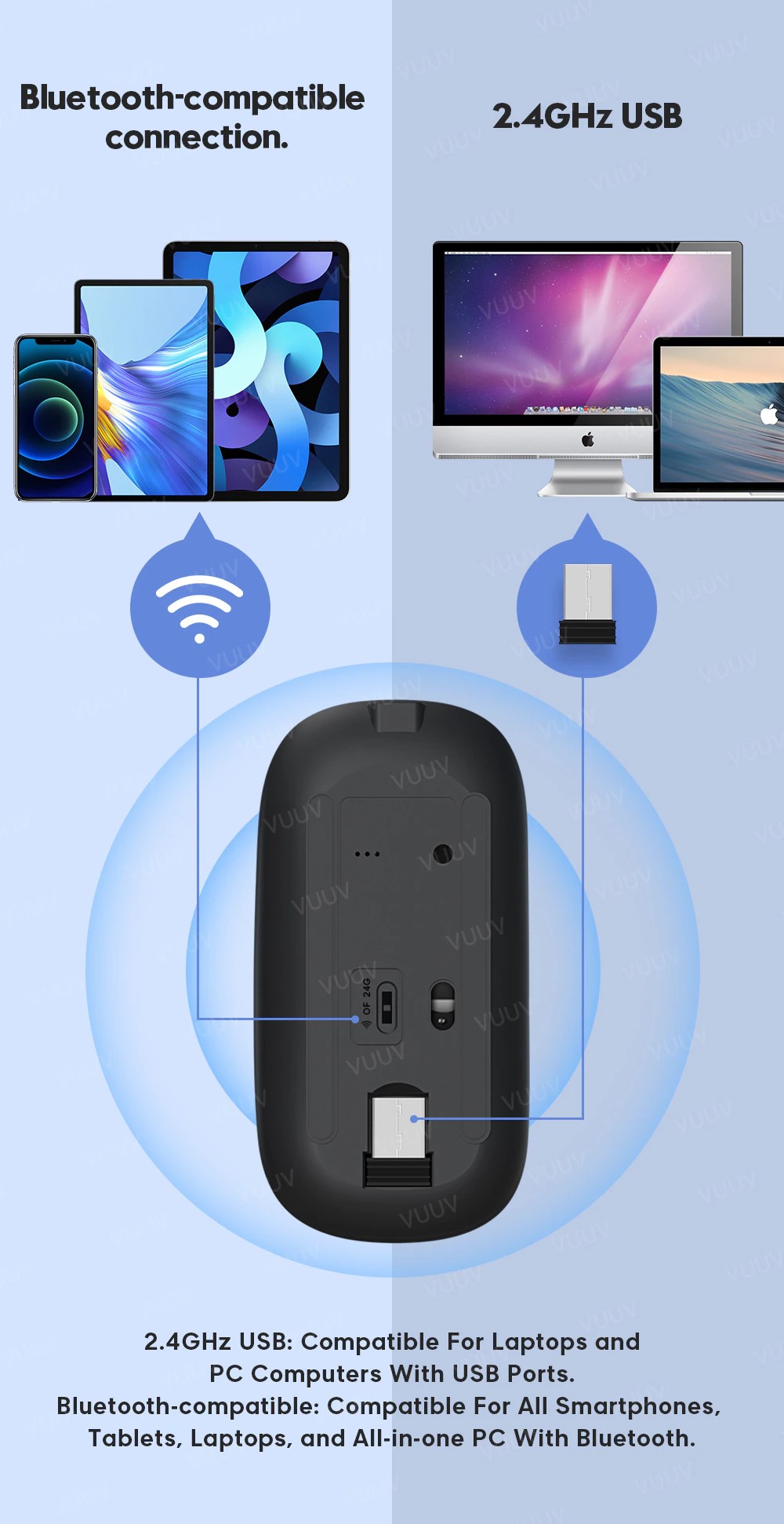 Muis: 2.4GHz USB + Bluetooth-compatibel verbinding.