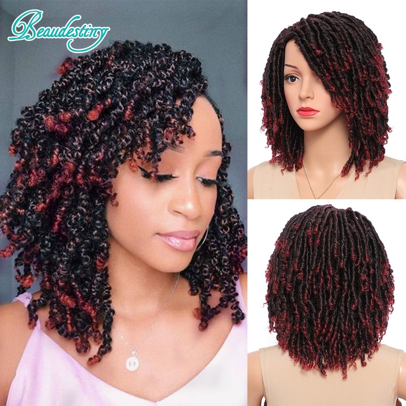 Gevlochten Pruiken Voor Vrouwen Synthetische Pruik Ombre Gevlochten Dreadlock Pruik Zwart Bruin Rood Afrikaanse Faux Locs Haak Twist Haar Korte Pruiken