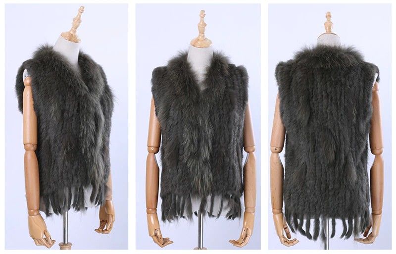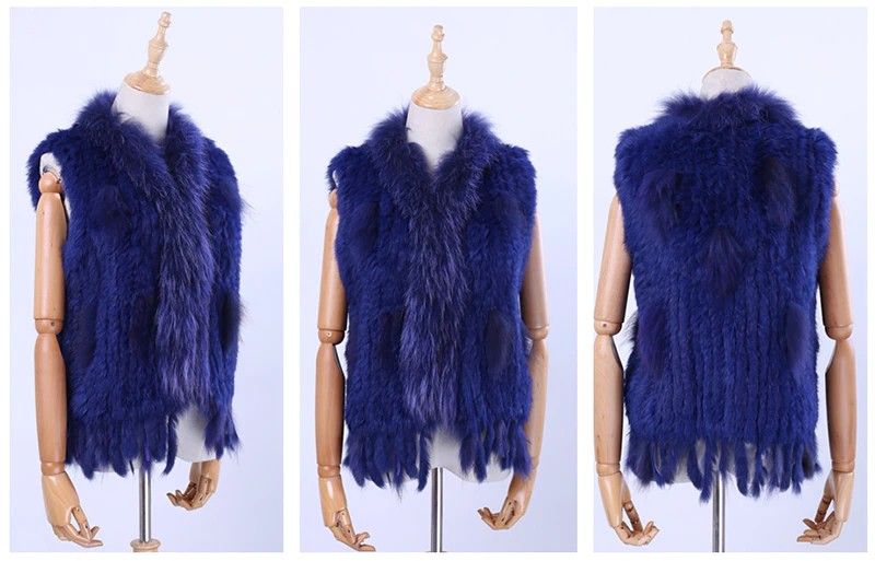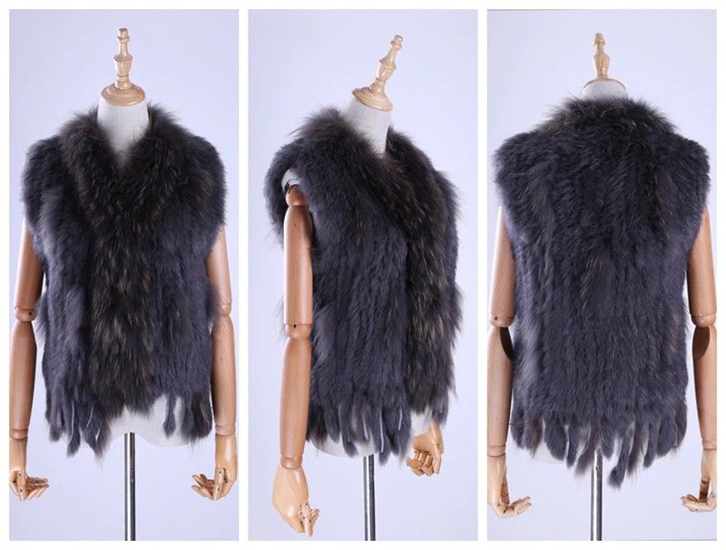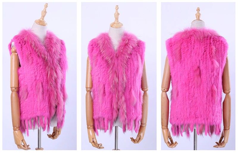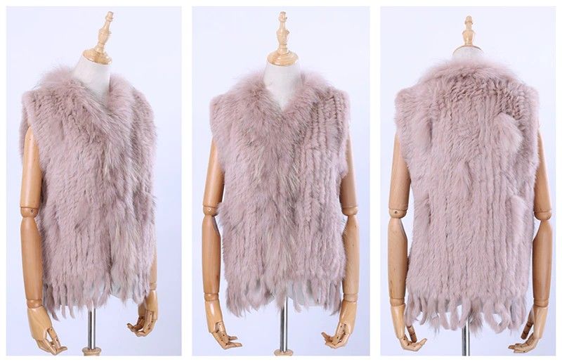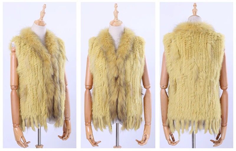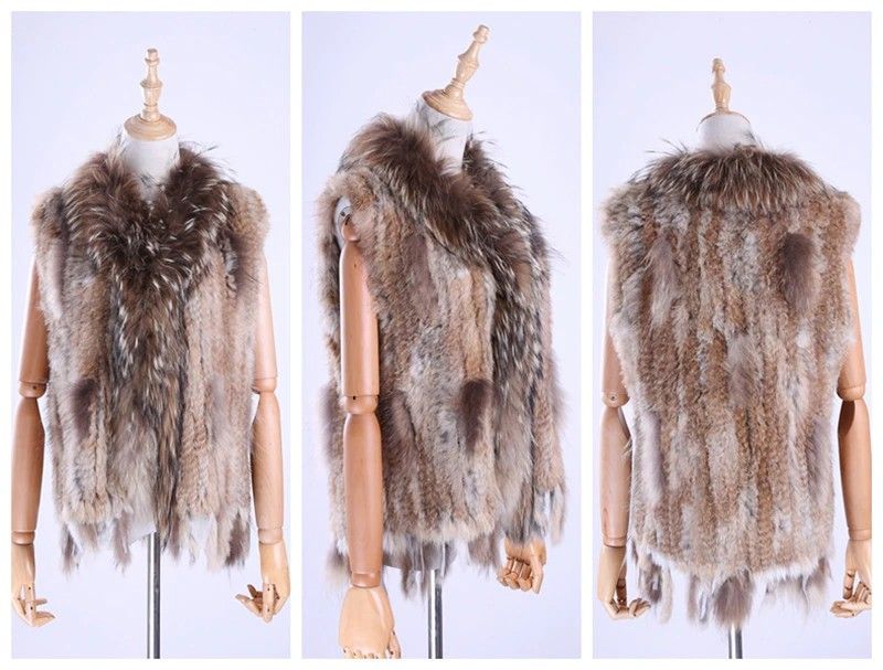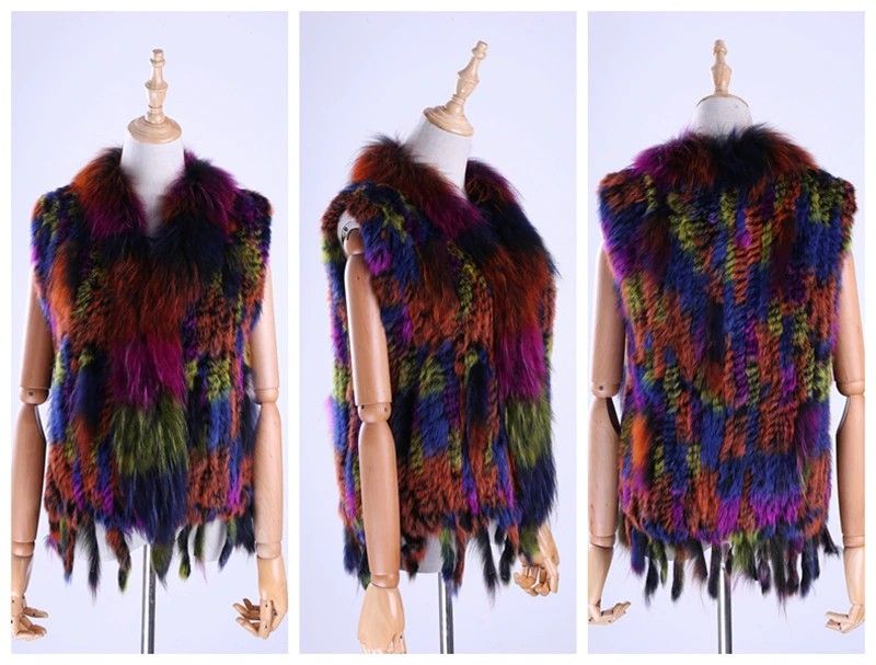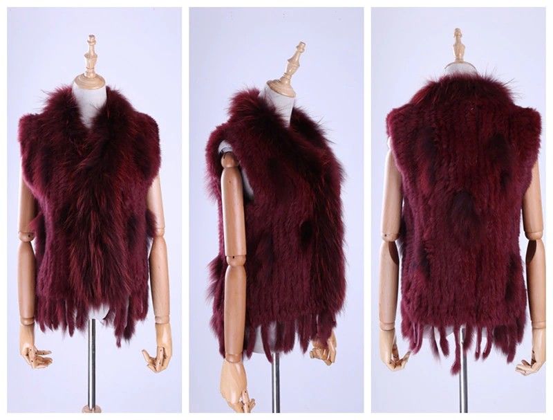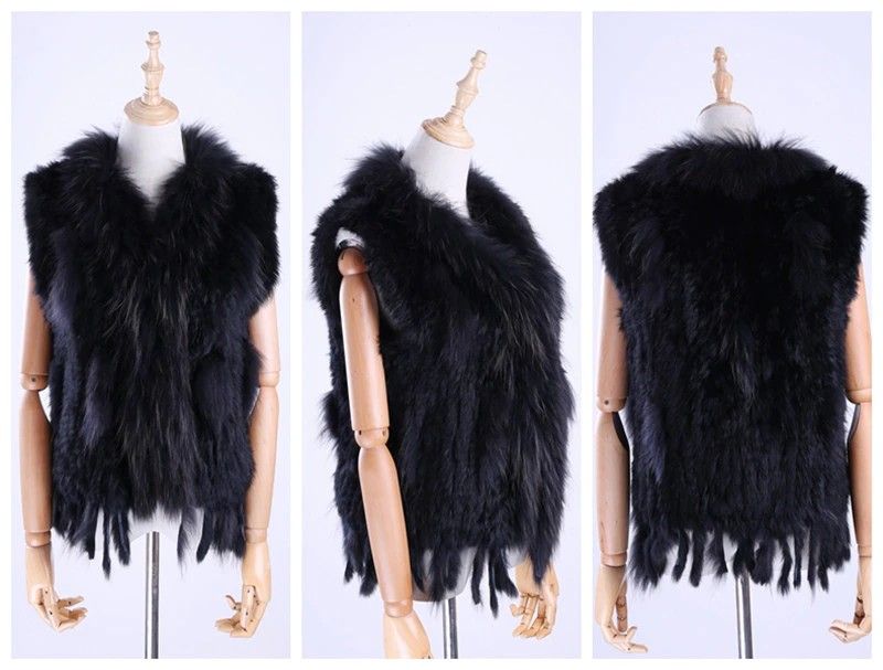 Brand New Vrouwen Lady Echte Echte Gebreide Konijnenbont Vesten Kwasten Wasbeer Bont Trimmen Kraag Vest Bont Mouwloze Gilet