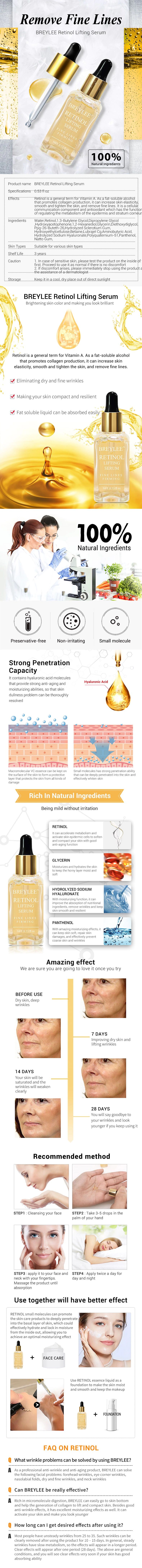 Breylee Retinol Serum Anti-Aging Lifting Versterking Collageen Facial Essentie Verwijderen Rimpels Verlichten Fijne Lijnen Reparatie Draai Huid