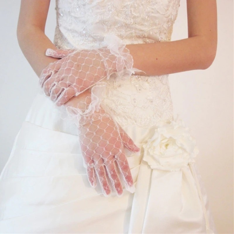 Bridal Lace Netto Garen Handschoenen Pols Lengte Handschoenen Vinger Korte Bruiloft Accessoires Drop Schip
