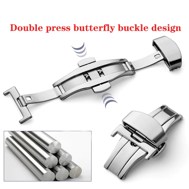 Vlinder Deployment Gesp Automatische Dubbele Klik Rvs Sluiting Band Voor Horloge Band 16Mm18Mm 20 Mm 22 Mm Horlogeband Sluiting
