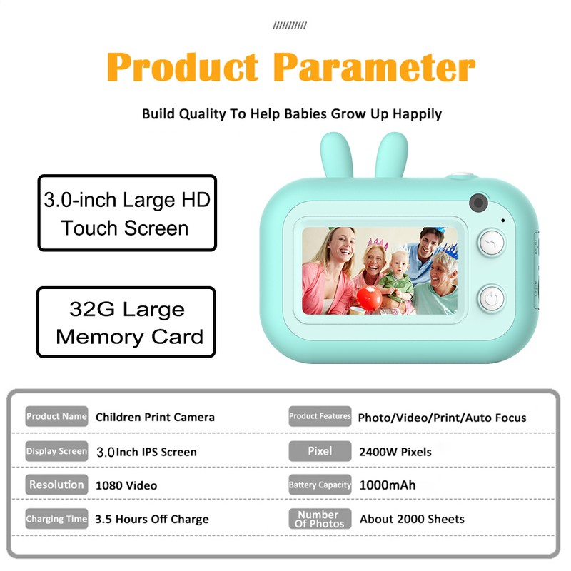 Kind Camera Kids 32Gb Instant Photo Camera Voor Kinderen Print 1080P Hd Digitale Voor Kinderen Foto Camera Speelgoed Verjaardag