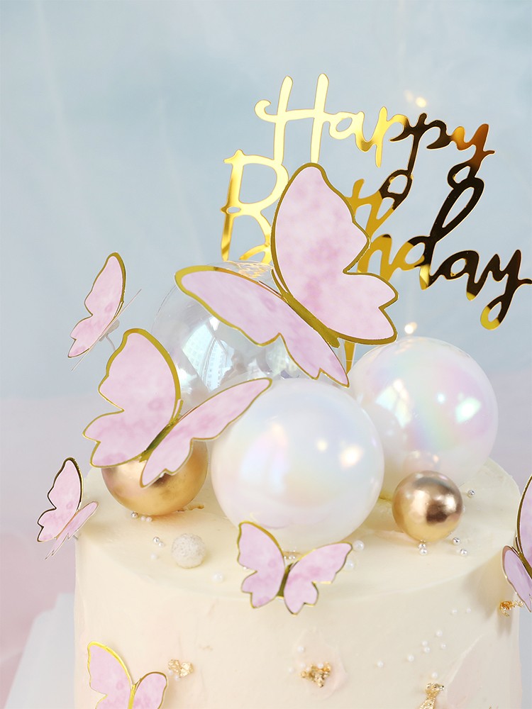 Biling Kleurrijke Roze Gouden Vlinder Gelukkige Verjaardag Cake Topper Bruiloft Bruid Dessert Decoratie Voor Verjaardagsfeestje Mooie Geschenken