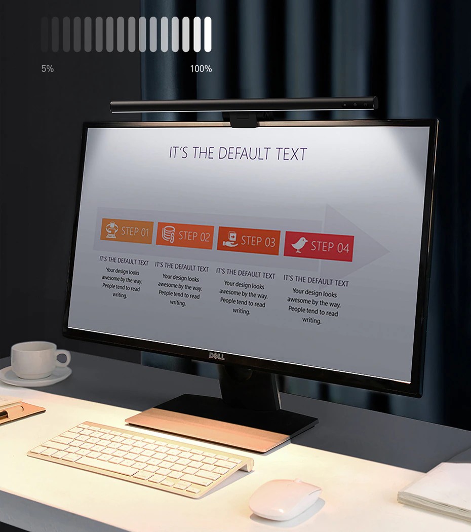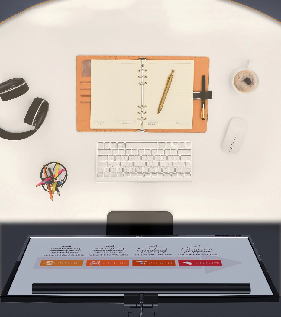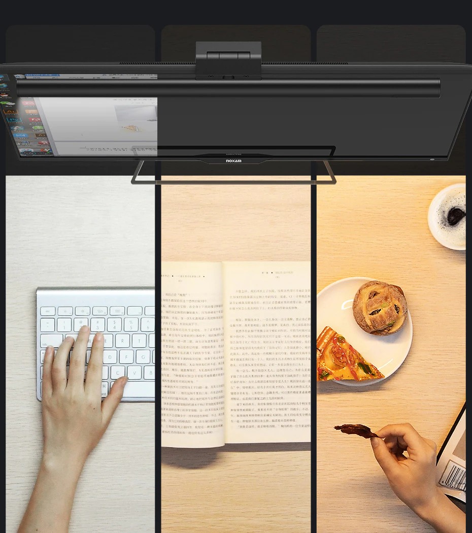 Rechte LED lichtbron voor een breed verlichte gebied zonder dode hoek. de lamp lichaam is ontworpen met een hellingshoek te verlichten het toetsenbord en documenten voor het scherm.