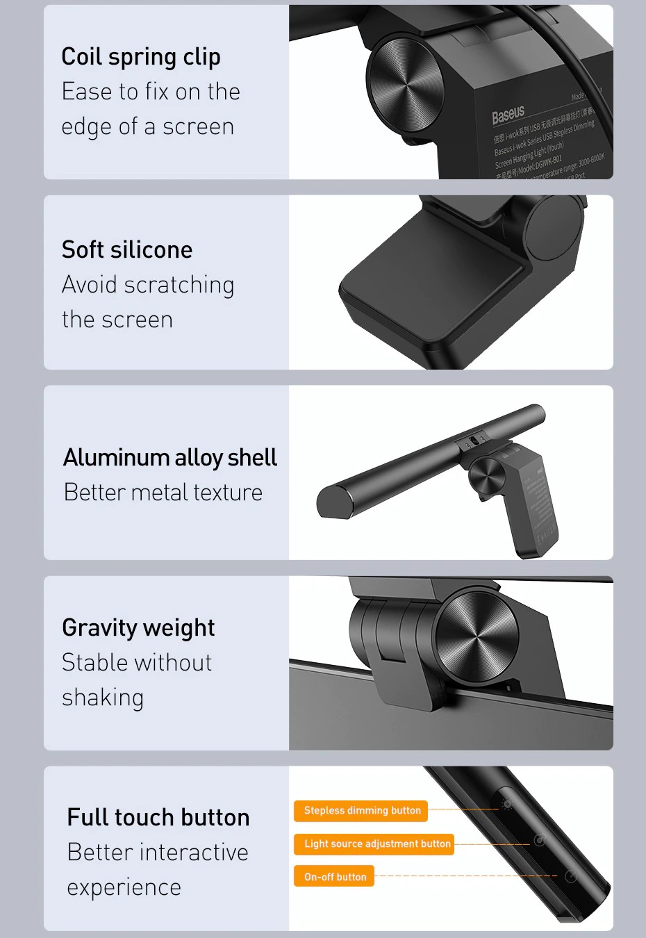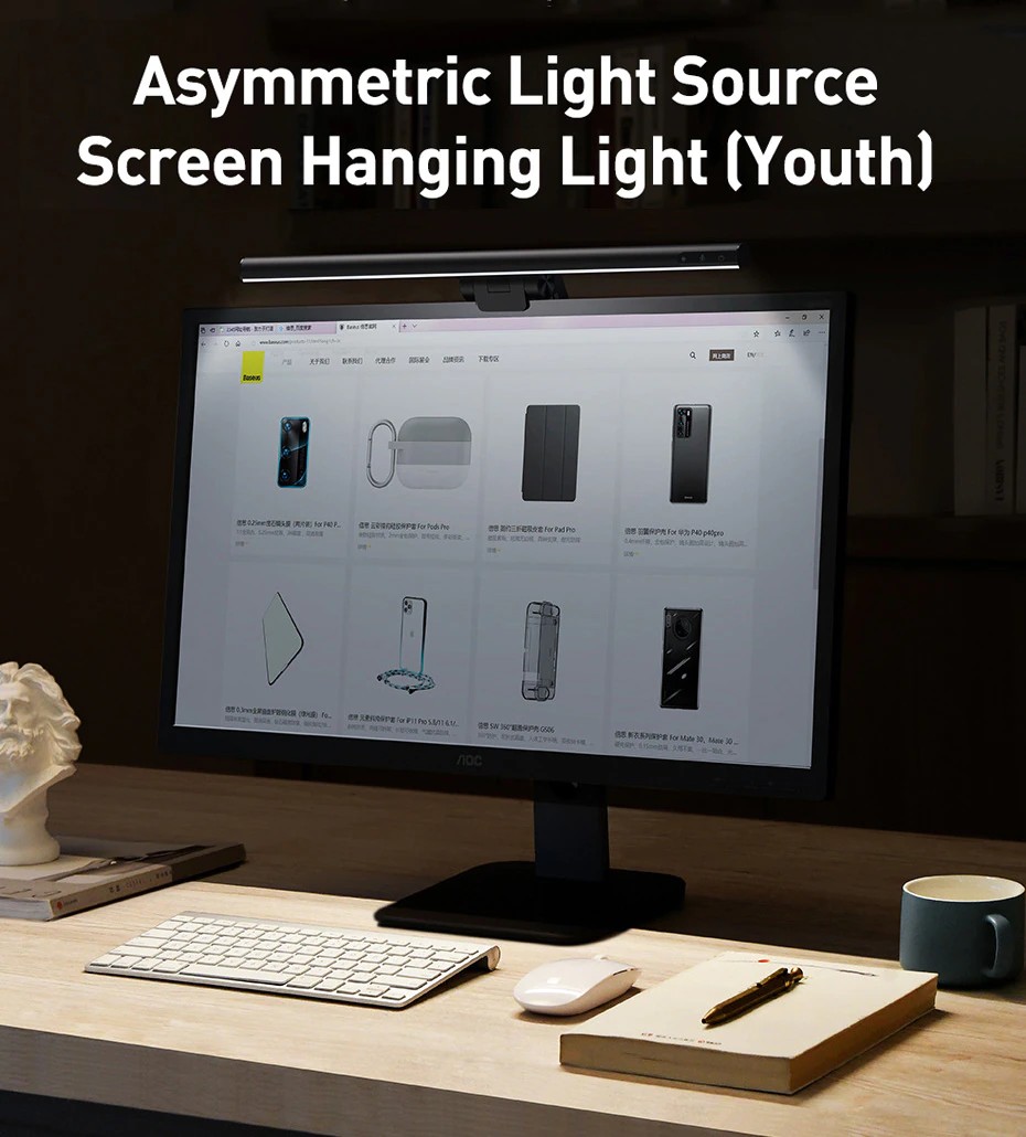 Baseus i-wok scherm opknoping lamp keurt asymmetrische lichtbron ontwerp, verlichten de desktop eerder dan het scherm. Geen verblinding beter voor oogbescherming.