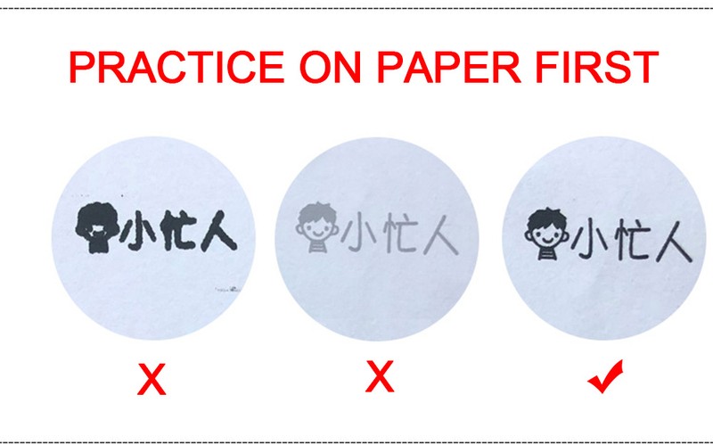 2. bij gebruik van de stempel, de perskracht moet niet te zwaar of te licht, en de drukken tijd moet niet te kort of te lang. Je kunt oefenen op papier eerste