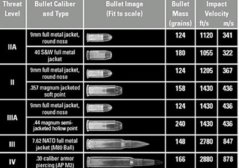 (.44 Magnum; Machinepistool 9mm). Deze armor beschermt tegen. 44 Magnum, Semi Jacketed Hollow Point (SJHP) kogels, nominale massa van 15.55g (240 gr.), invloed op een snelheid van 426 m/s (1,400 ft/s) of minder, en tegen 9mm full-metalen jacketed kogels, met nominale massa van 8.0g (124 gr.), Invloed op een snelheid van 426 m/s (1,400 ft/s) of minder. Het biedt ook bescherming tegen de meeste pistool bedreigingen, evenals het Niveau I, IIA, en II bedreigingen. Niveau IIIA body armor biedt het hoogste niveau van bescherming momenteel beschikbaar van camoufleerbare body armor en is algemeen geschikt voor routine dragen in vele situaties. Echter, afdelingen gevestigd in hete, vochtige klimaten kan moeten evalueren het gebruik van Niveau III-A armor voorzichtig