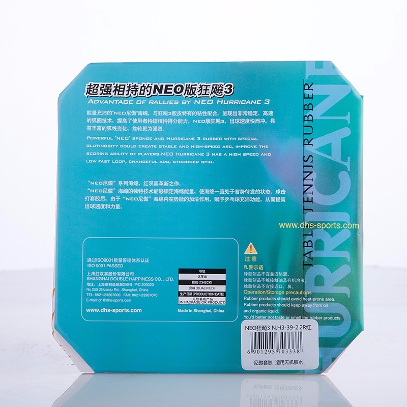 Krachtige "NEO" spons en Hurricane 3 rubber met speciale kleverigheid kon creëren stabiele en hoge-snelheid arc, verbeteren de scoren vermogen van spelers. NEO Hurricane 3 heeft een hoge snelheid en lage snelle loop, veranderlijk boog, sterker draai.