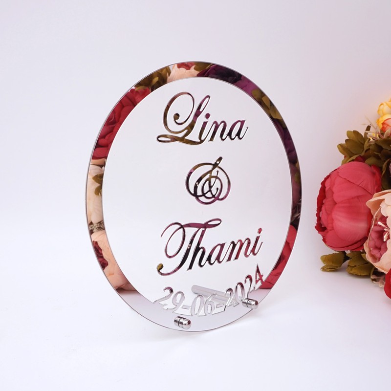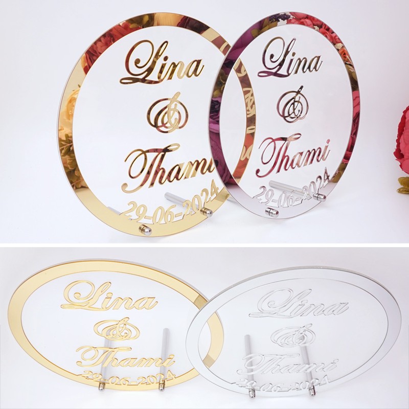 Verschillende Stijl Custom Wedding Borden Naam Datum Acryl Spiegel Frame Woord Teken Party Decor Met Nail Favor Gift Ronde Hart