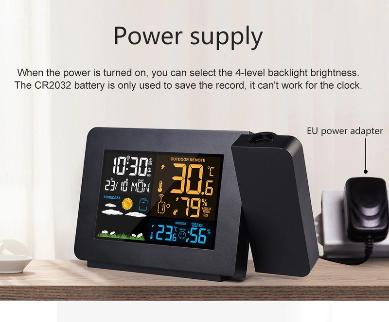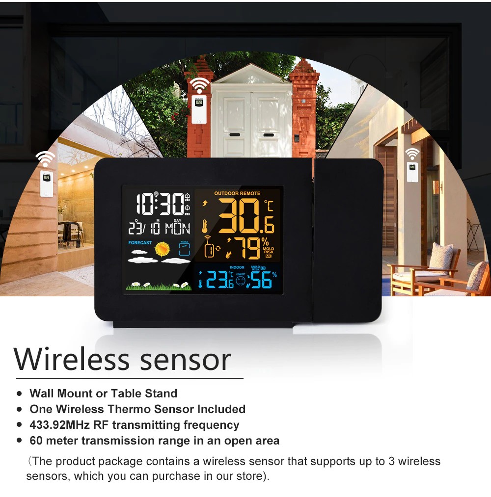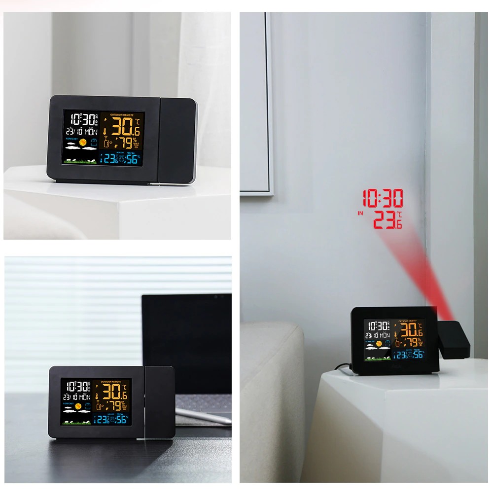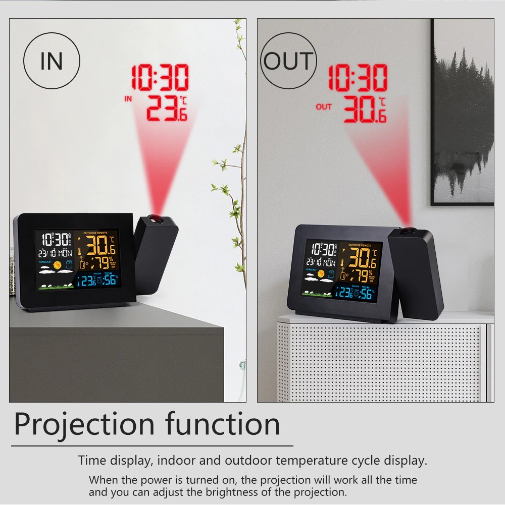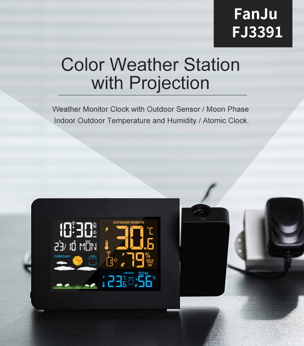 FanJu FJ3391 Kleur Weerstation met Projectie/Weer Monitor Klok met Outdoor Sensor / Indoor Outdoor Temperatuur en Vochtigheid/Moon Phase / Atomic Klok.