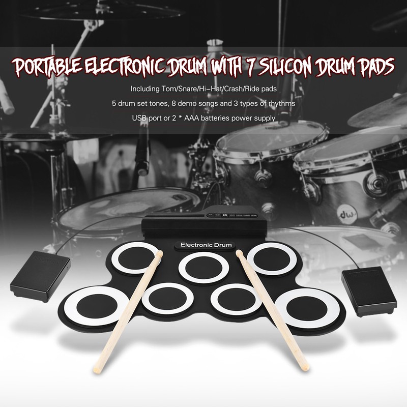 Digitale Elektronische Drum Compact Size Usb Opvouwbaar Silicon Drums Set Digitale Drum Kits 7-Pad / 9 Pads Met Drumsticks Voet Pedalen