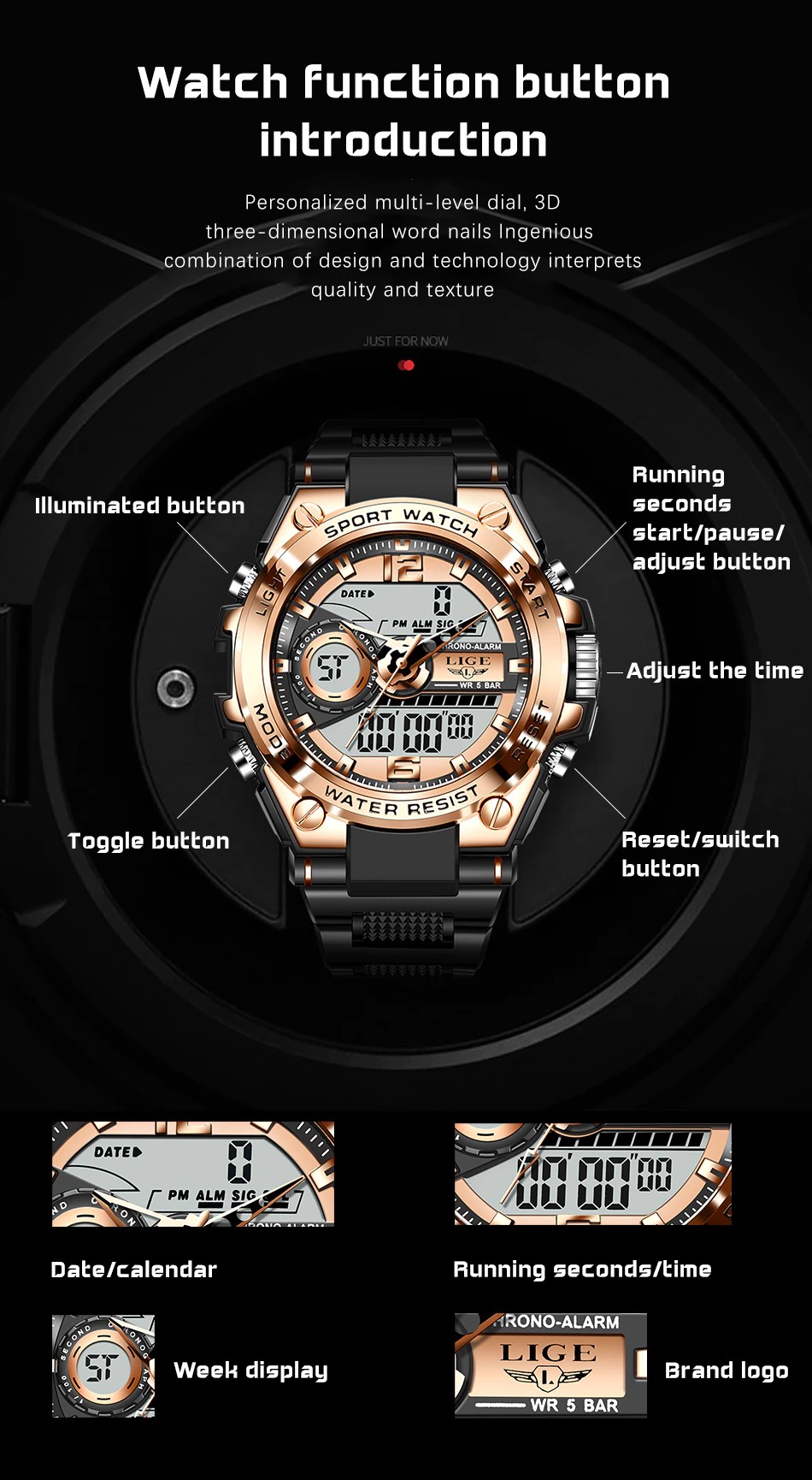 Luik Digitale Mannen Militaire Horloge 50M Waterdicht Horloge Led Quartz Klok Sport Horloge Mannelijke Grote Horloges Mannen Relogios Masculino