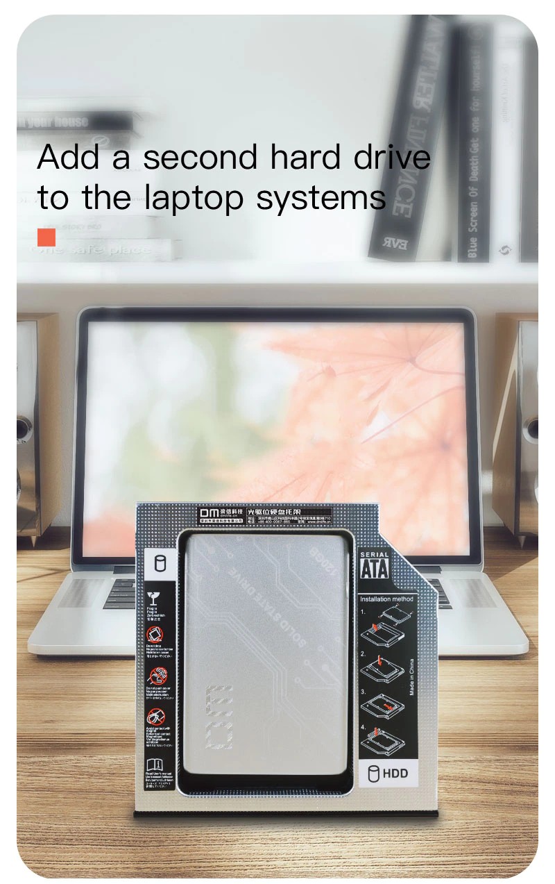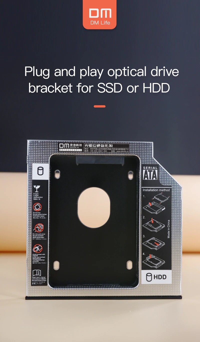 Dm Dw95S Hdd Caddy 9.5Mm Aluminium Optibay Sata 3.0 Harde Schijf Box Behuizing Dvd Adapter 2.5 Ssd 2Tb Voor Laptop Cd-Rom