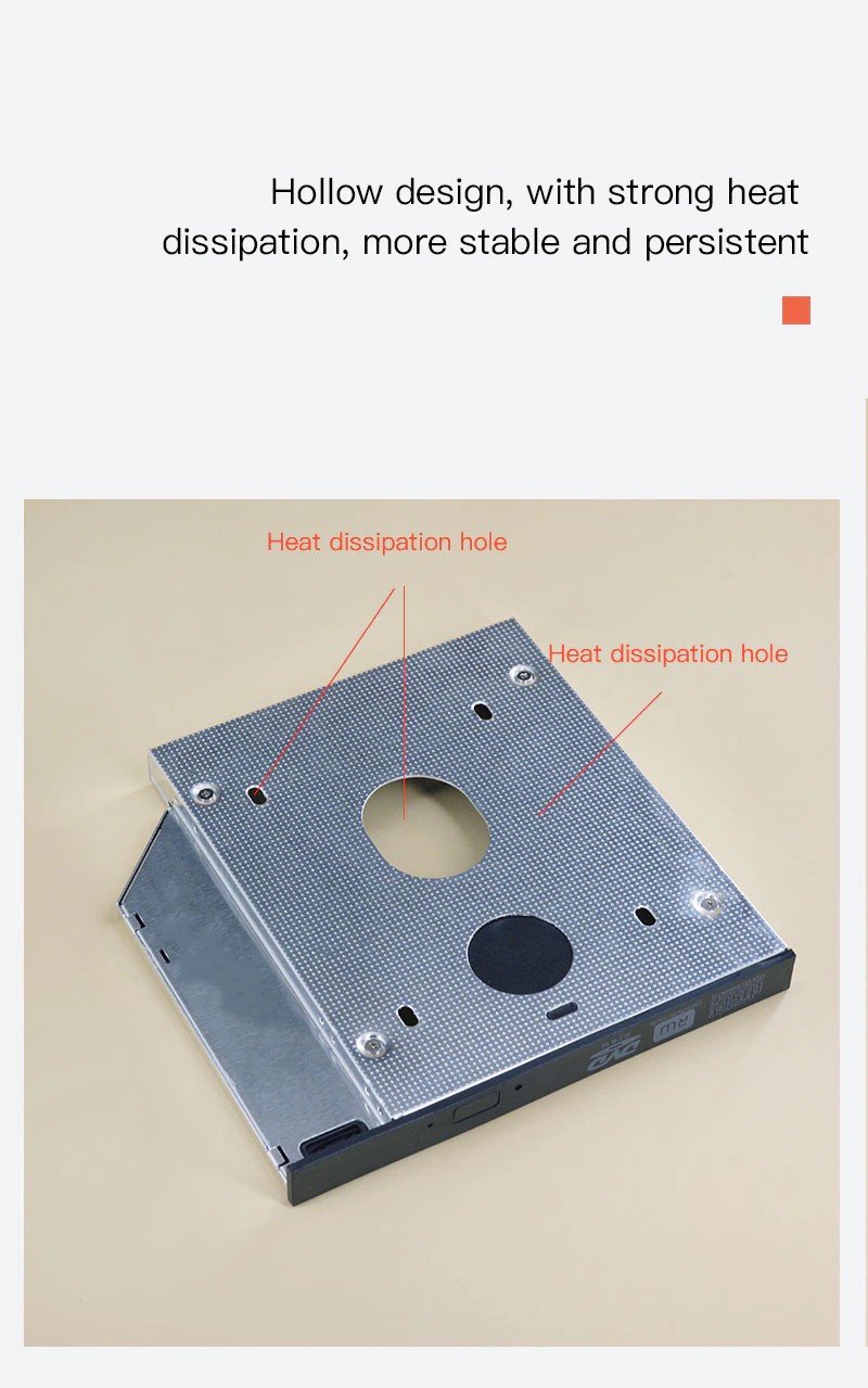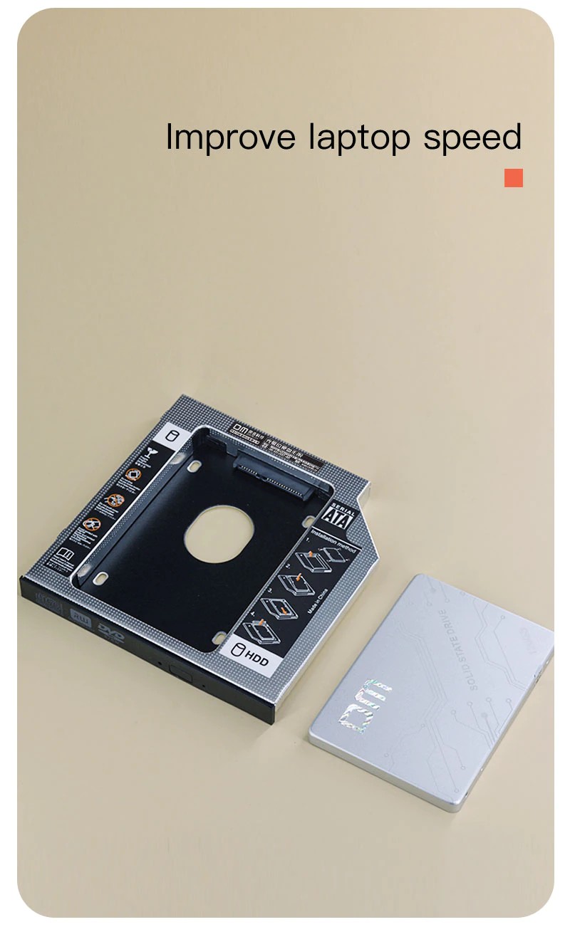 1. 100% Nieuw en Nooit Gebruikt Item; 2. de dikte van deze adapter is 9.5mm; 3. interne Interface: SATA (voor 2.5 "HDD/SSD of ssd drive); Externe Interface: SATA (voor Laptop/Moederbord); 4. ondersteuning SATA I en SATA II & SATA III; 5. de 2nd Harde Schijf Caddy / Adapter brengen je nieuwe maximale gegevensopslag flexibiliteit. Met de tweede HDD in uw Laptop, 6. kunt u snelheid backup belangrijke applicaties en kritische data (Gewoon verwijderen van uw CD-ROM drive en zet de Caddy (met de extra harde schijf) in de plaats.