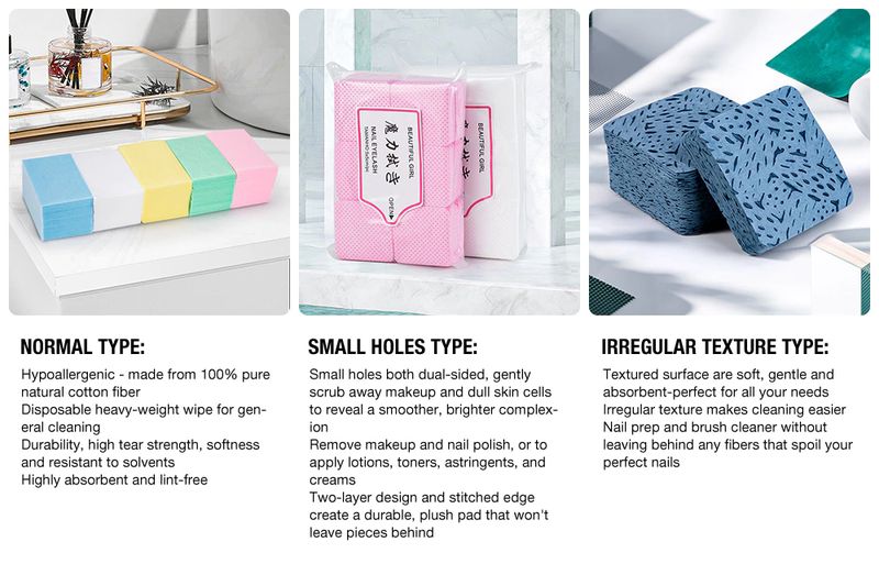 Niet-pluizende nagel doekjes. Zacht, absorberend, en sanitair.