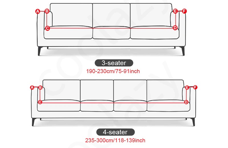 3 zitplaatsen: 190-230cm / 74.80-90.55in