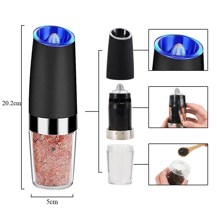 Elektrische Zout En Peper Slijpmachines Rvs Automatische Zwaartekracht Herb Spice Mill Verstelbare Grofheid Keuken Gadget Sets