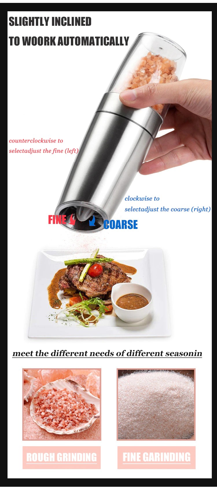 Kan de gebruiker tochange de fijnheid of grofheid van de grind, gebaseerd op het recept eisen of persoonlijke voorkeuren. De automatische ontwerp kunt u grind zout of peper met een hand