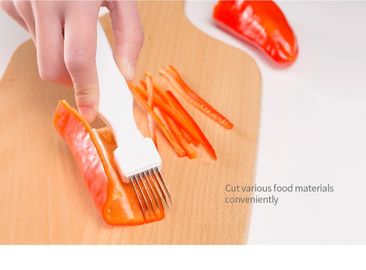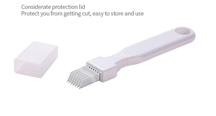 ♥7 bladen, die kan worden versnipperd en gesneden in secties. De afstand tussen elke stalen mes is hetzelfde, en het kan snel uitsnede zelfs gesnipperde groene ui en groene ui segmenten.