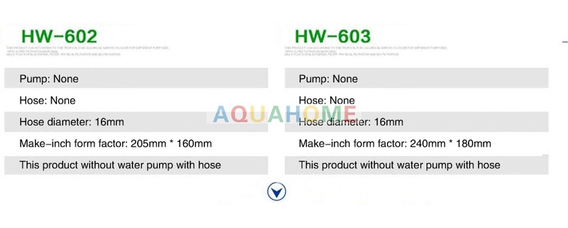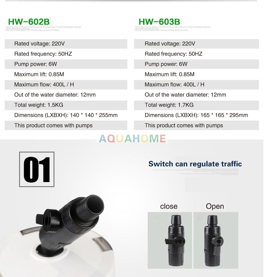 3.HW602B is geschikt voor aquarium van 150 liter; HW603B is geschikt voor Aquarium van 200 liter of minder;We suggereren proberen te kopen HW603B.