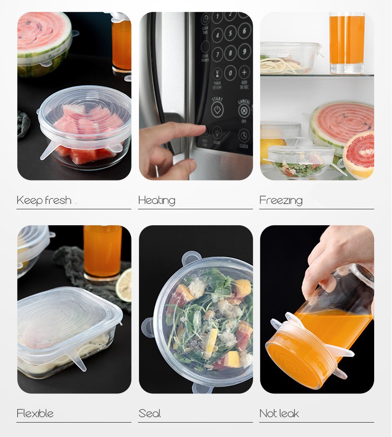 2. herbruikbare Voedsel Opslag Deksels zijn super flexibel, geen vervorming, stabiel en duurzaam, anti-slip met goede elasticiteit.