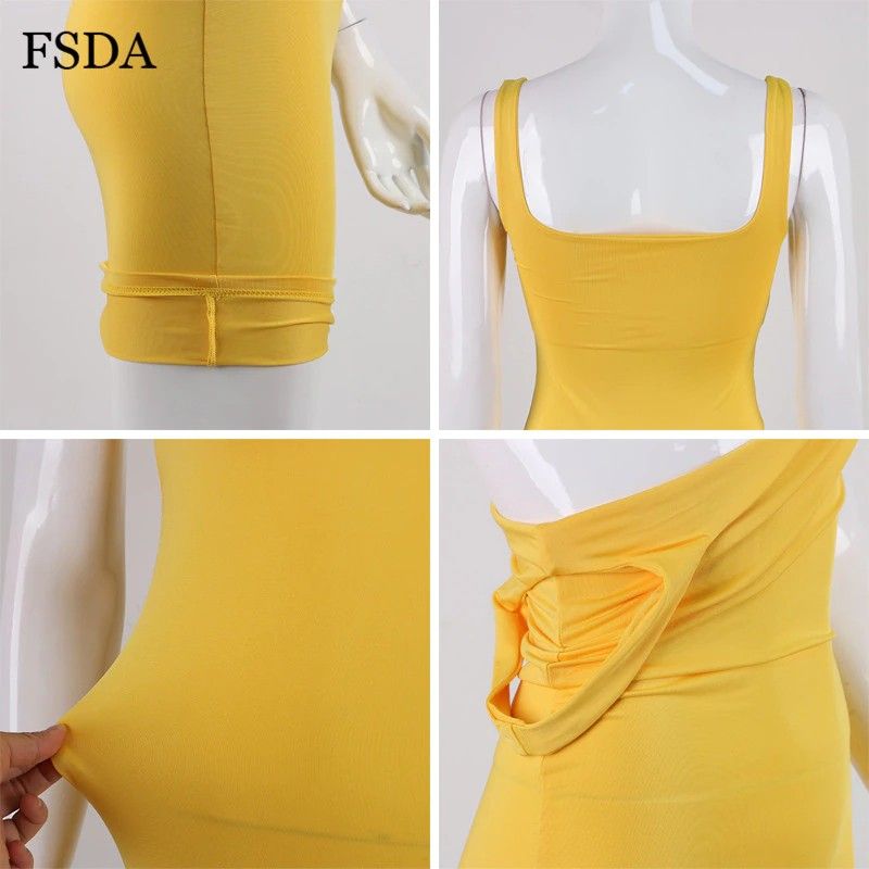 Fsda Vierkante Hals Mouwloze Bodycon Mini Jurk Basic Vrouwen Zomer Zwart Backless Party Sexy Geel Clubwear Laatste Jurken