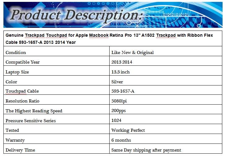 Echt A1502 Touchpad Trackpad Voor Apple Macbook Retina Pro 13 &Quot;A1502 Trackpad Met Lint Flex Kabel 593-1657-A 2013 2014 Jaar