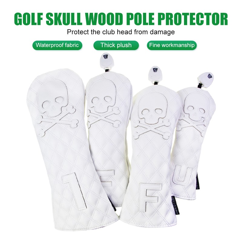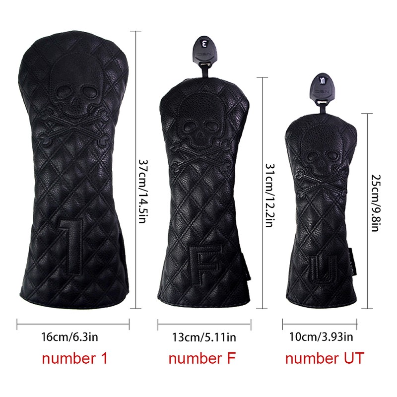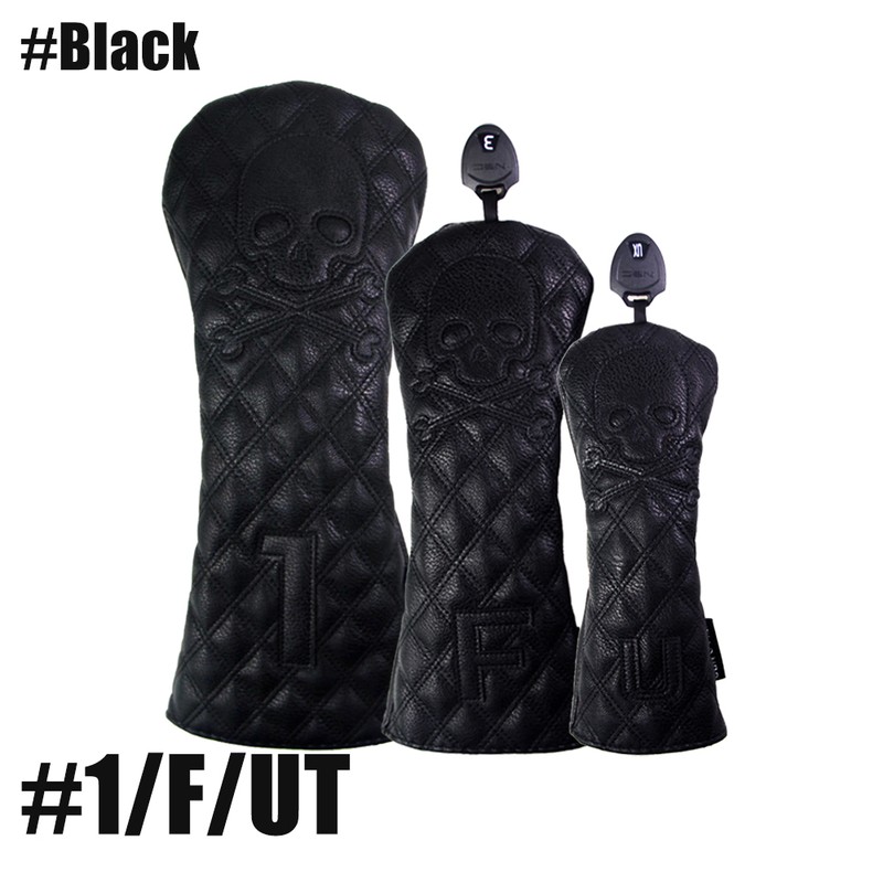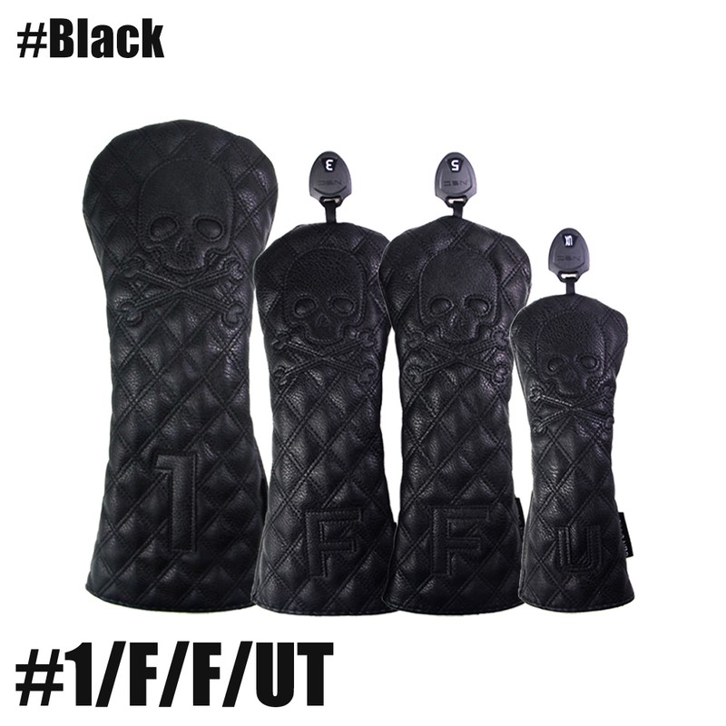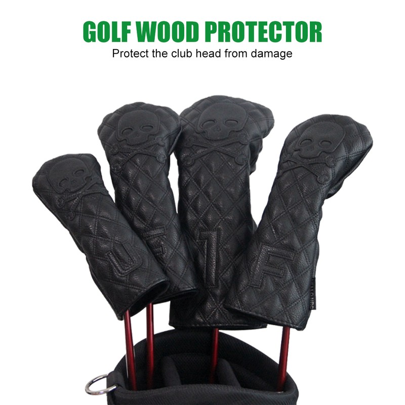 Gloof Golf Schedel Skelet Hoofd Cover Golf Club Zwart Lederen Headcovers Set Past Driver Fairway Wood Hybrid Golf Leveringen