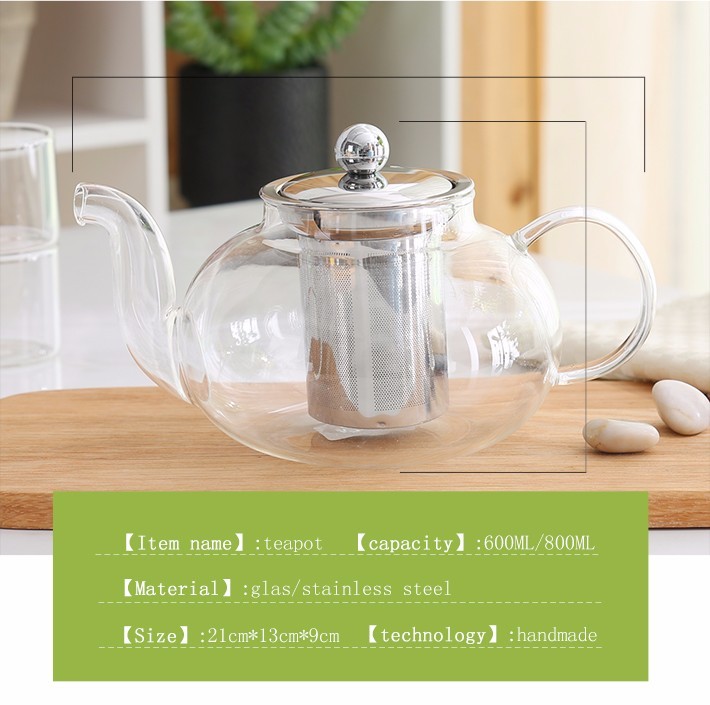 Goede Clear Borosilicaatglas Theepot Met 304 Roestvrijstalen Theefilter Zeef Hittebestendige Losse Blad Thee Pot Tool ketel set | |
