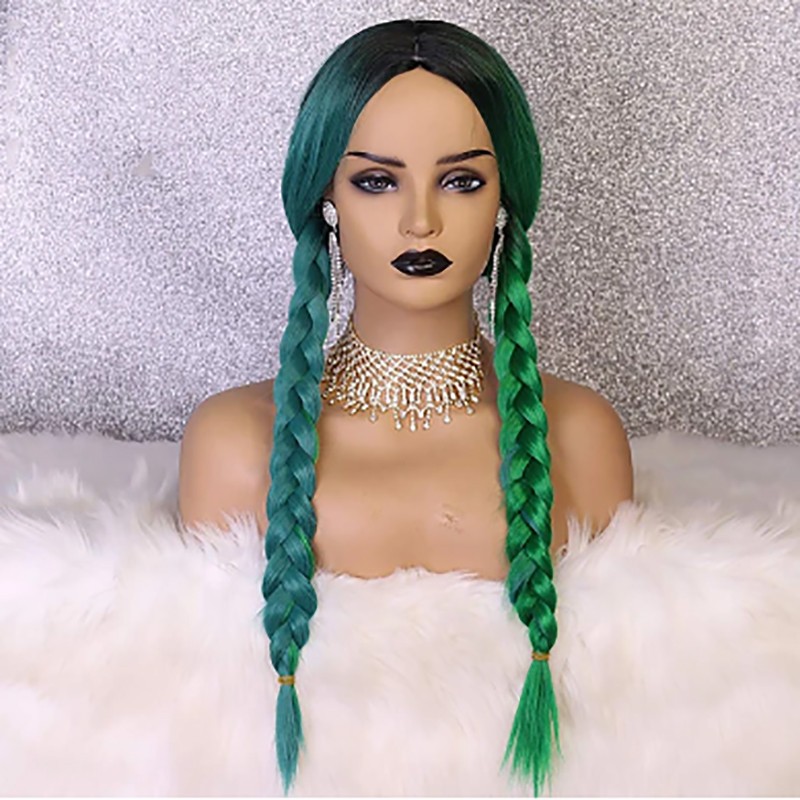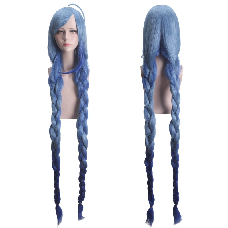Hairjoy Cosplay Lol Jinx 100Cm Lange Blauw Met Dubbele Vlechten Halloween Anime Kostuum Pruik Hittebestendige Synthetisch Haar
